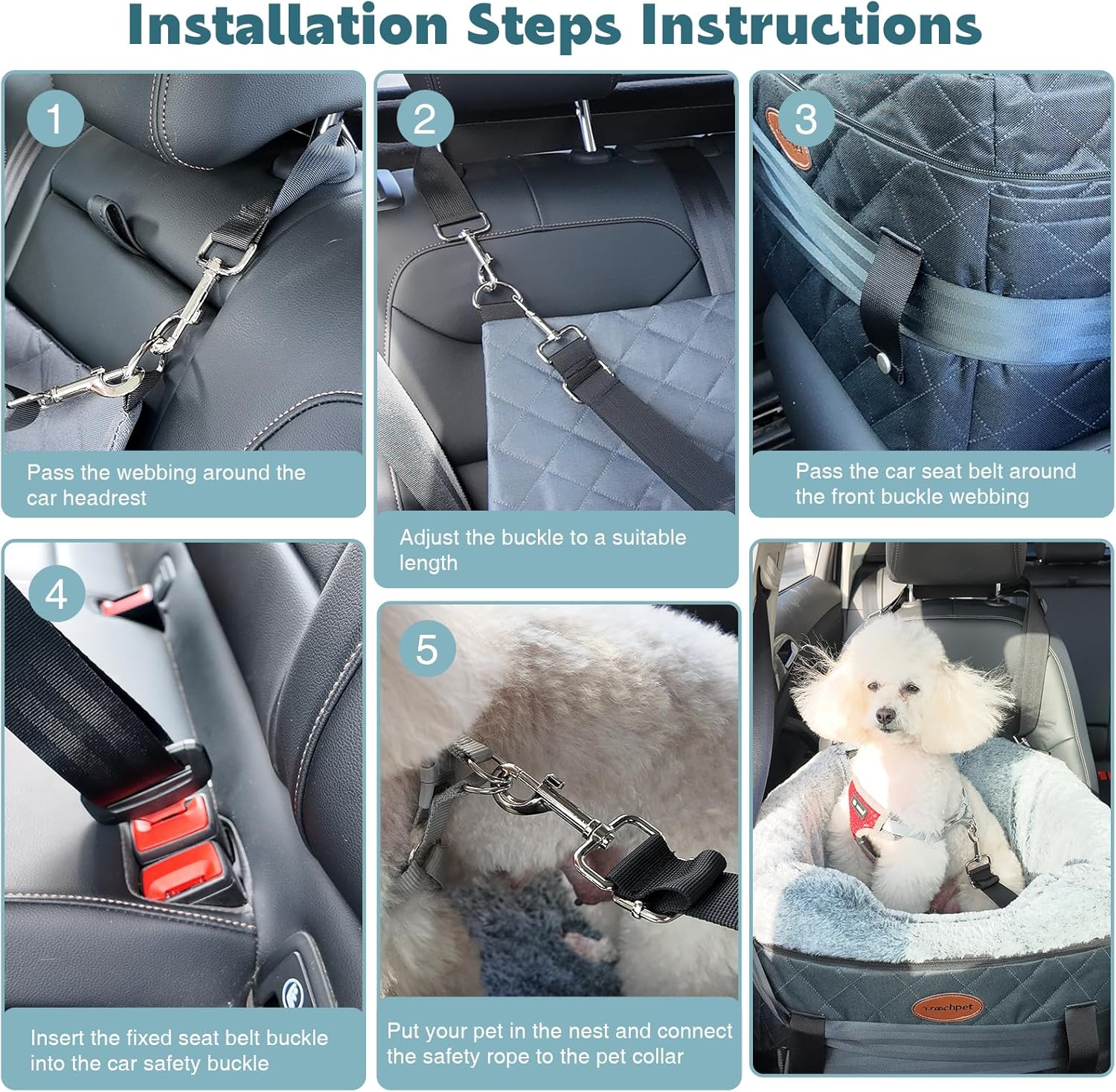 【Multiple Protection】This dog car seat is equipped with a special webbing, which is easy to install. It can be tightly connected to the seat belt or other fixing devices in the car, It effectively reduces the bumps and shakes of the dog in the car. Once the emergency brake is applied, the fixing buckle will firmly fix the dog in a area, minimizing the risk of injury to the dog. Reduce the disturbance of your pet so that you can concentrate on driving and enjoy the joy of traveling with your dog.