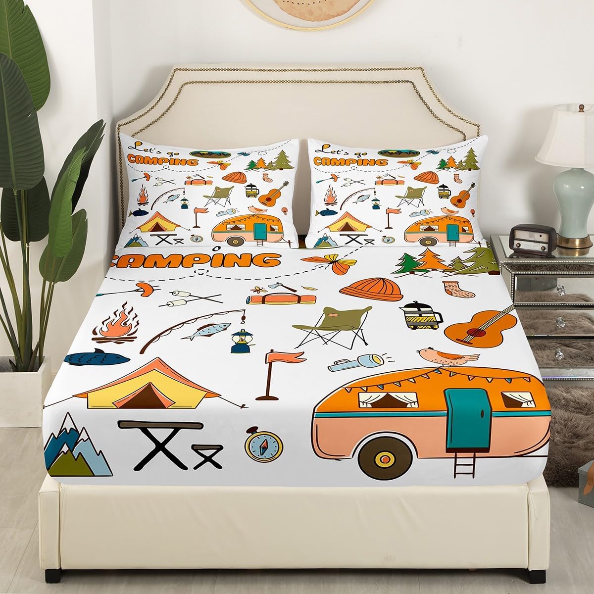 Happy Camping Twin Bed Sheets Set for RVs and Teens