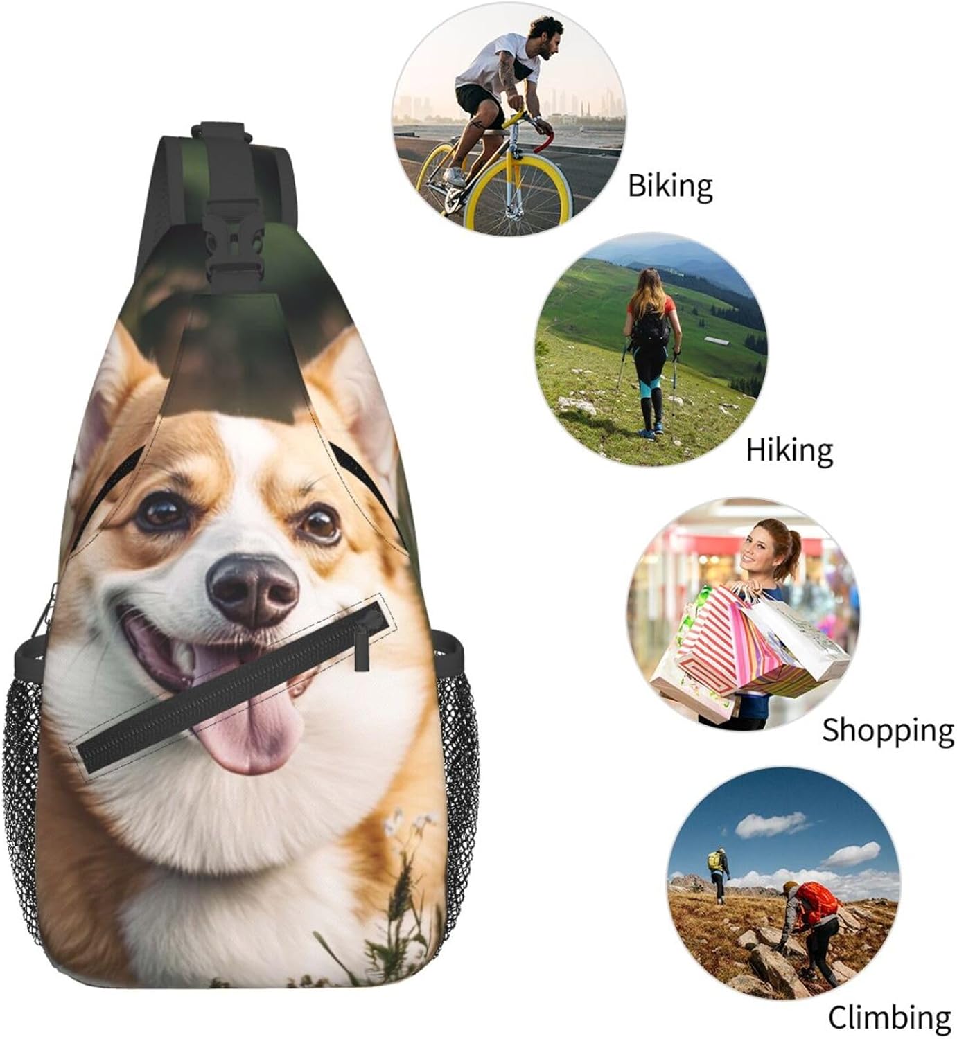 Easy switching: The Happy Corgi Dog cross body shoulder bag perfectly fit your body. Good construction designed with one right / left easily switchable and adjustable padded strap, this everyday sling bag is convenient to wear on your left or right shoulder.