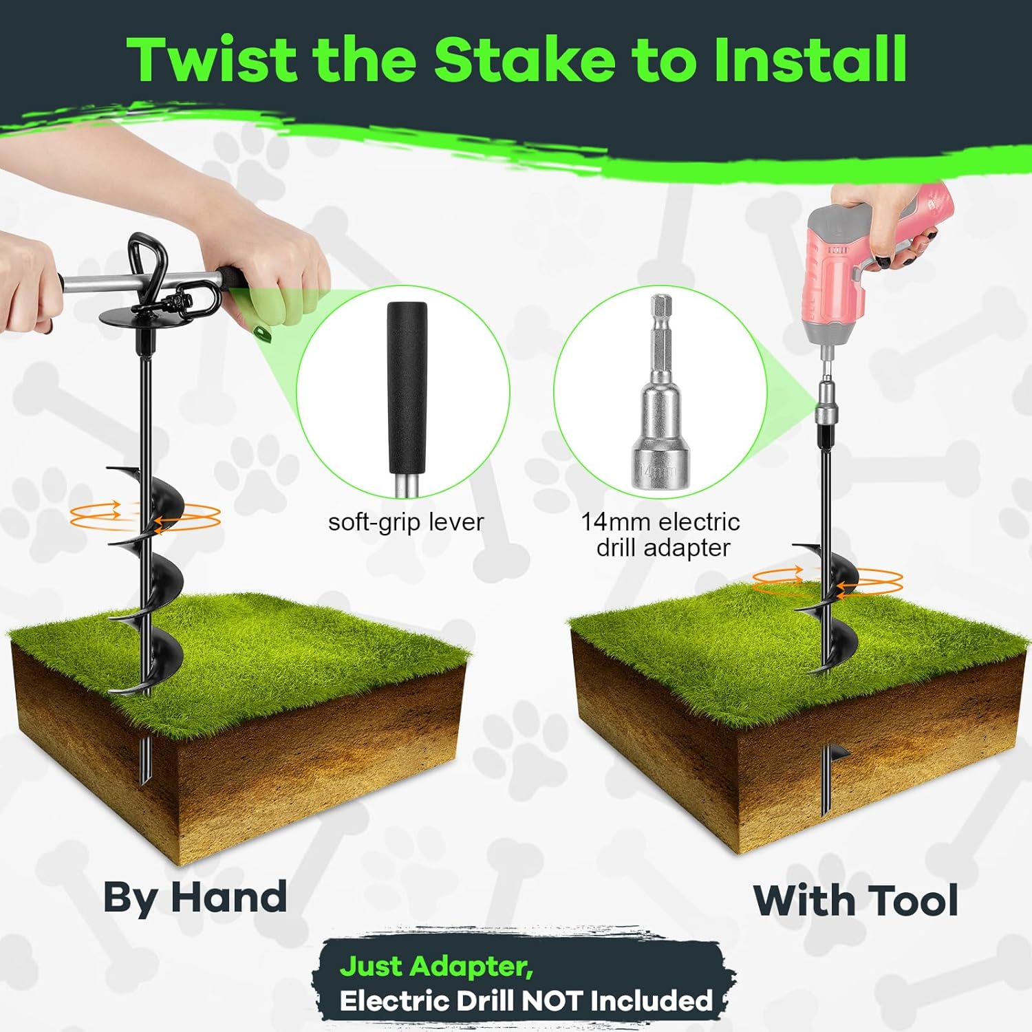 Effortless Spiral Screw-In Design – Our ground dog anchor has a spiral tip for easy setup, with a soft-grip steel lever and 14mm electric drill adapter. Install quickly by hand or power tool.