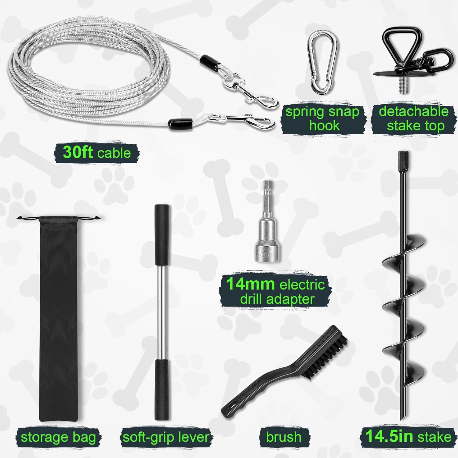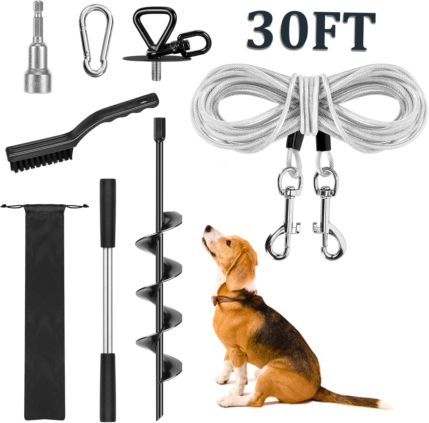 Complete Package & Maintenance Tip – You get 1x detachable-top stake, 1x 30ft cable, 1x soft-grip lever, 1x 14mm adapter, 1x spring snap hook, 1x cleaning brush and 1x storage bag. Check stake & cable regularly to prevent loosening.