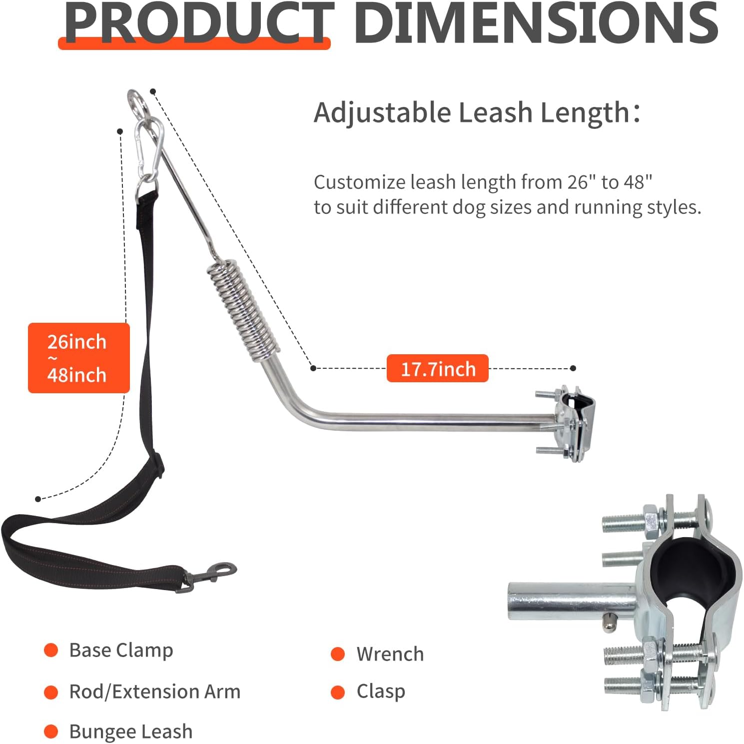 SAFE & TANGLE-FREE RIDING: The bike dog leash attachment keeps your pup about 14″ away from the wheel with an elevated pivot arm, preventing pedal interference and eliminating the risk of tangled paws for a smoother, safer ride.