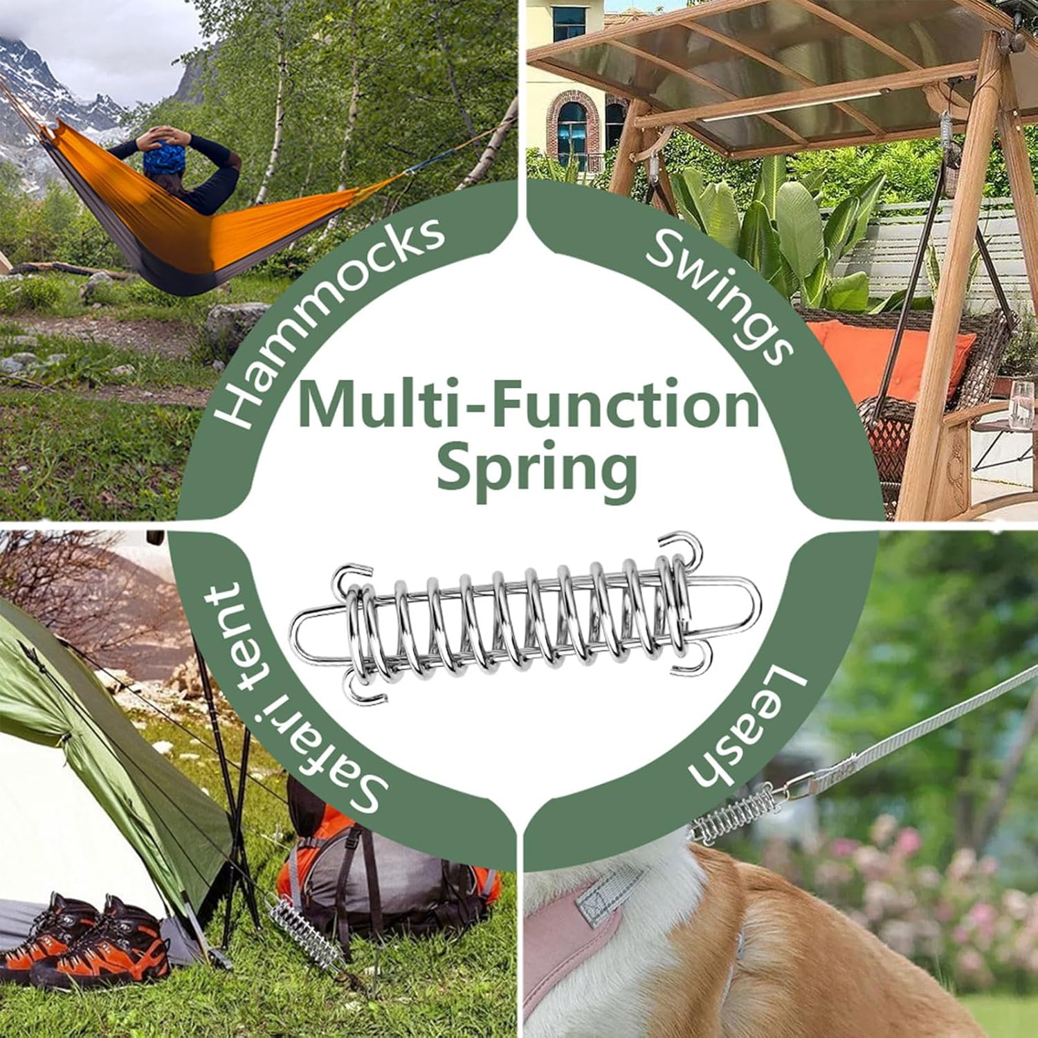 Easy to Install: The extension spring has hooks on both ends to firmly fix the tent. Connect one end of the spring to the ground bolt and one end to the tent rope.