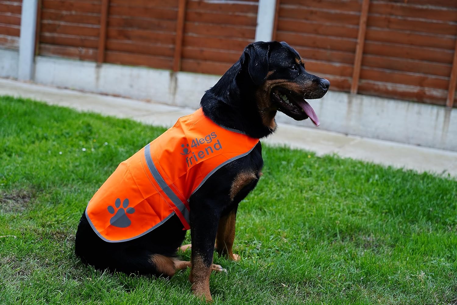 Keep your best friend safe night and day with the 4LegsFriend High-Visibility Vest. This jacket has an eye-catching blaze orange color and reflective trims and prints to ensure that your dog is visible wherever he/she goes.