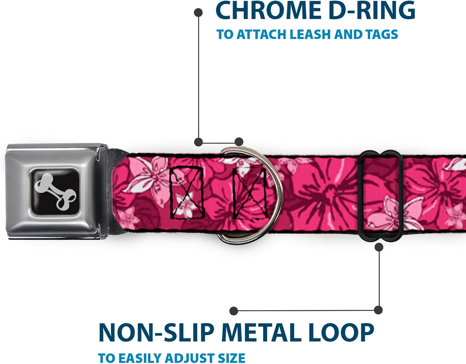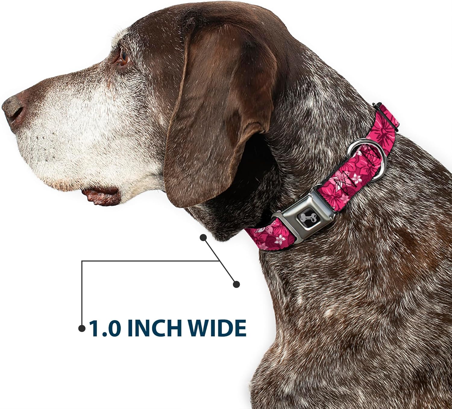 Buckle-Down Seatbelt Buckle Dog Collar – Hibiscus Collage Pink Shades – 1″ Wide – Fits 11-17″ Neck – Medium