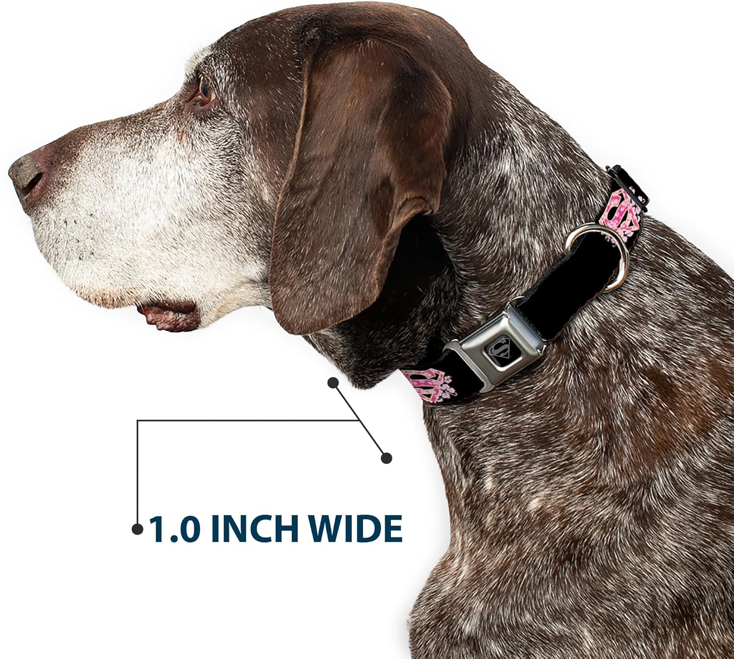 Buckle-Down Seatbelt Buckle Dog Collar – Super Shield Hibiscus Design Black/Pink – 1″ Wide – Fits 9-15″ Neck – Small