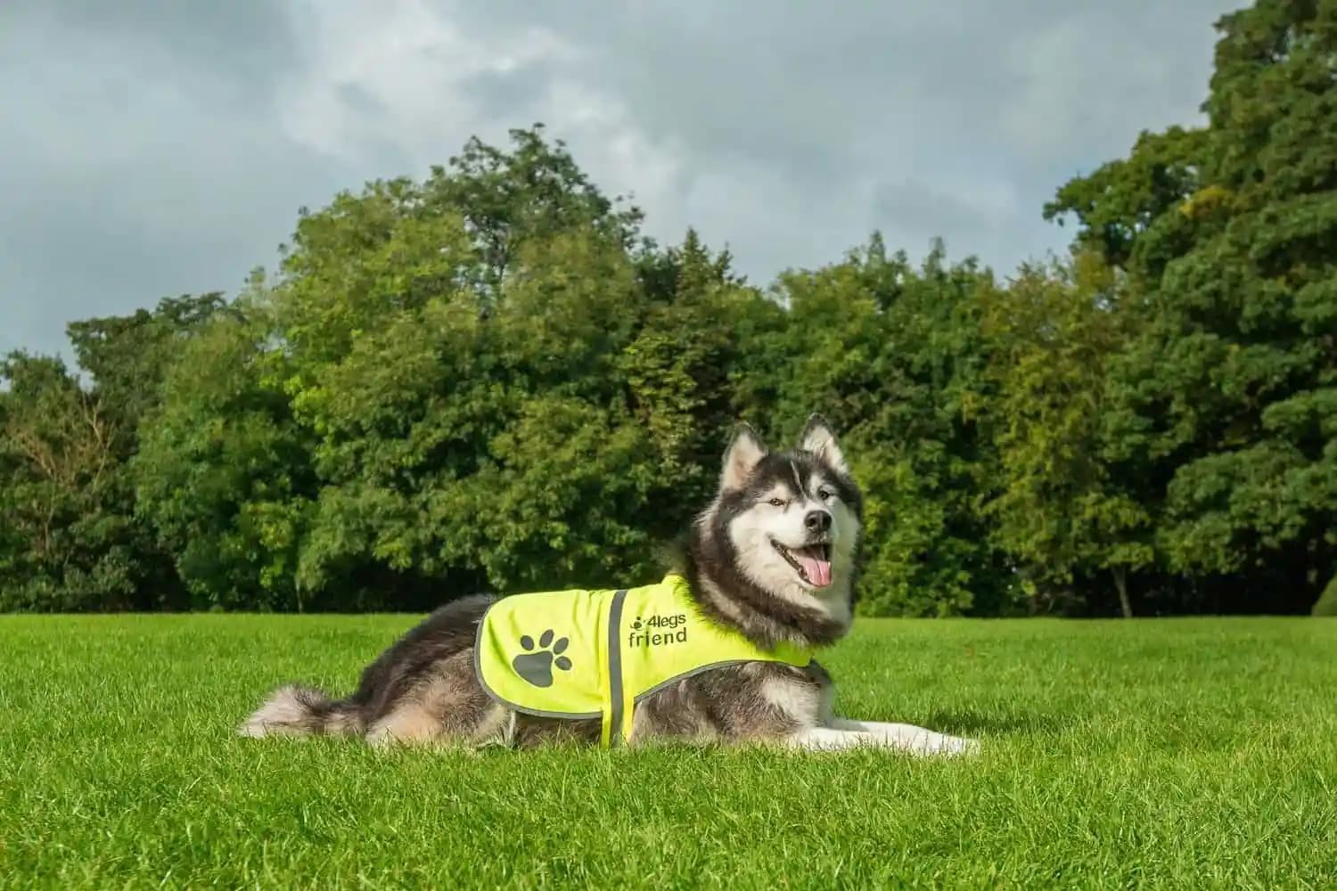 Keep your best friend safe night and day with the 4LegsFriend High-Visibility Vest. This jacket has an eye-catching fluorescent yellow/blaze orange color and reflective trims and prints to ensure that your dog is visible wherever he/she goes.