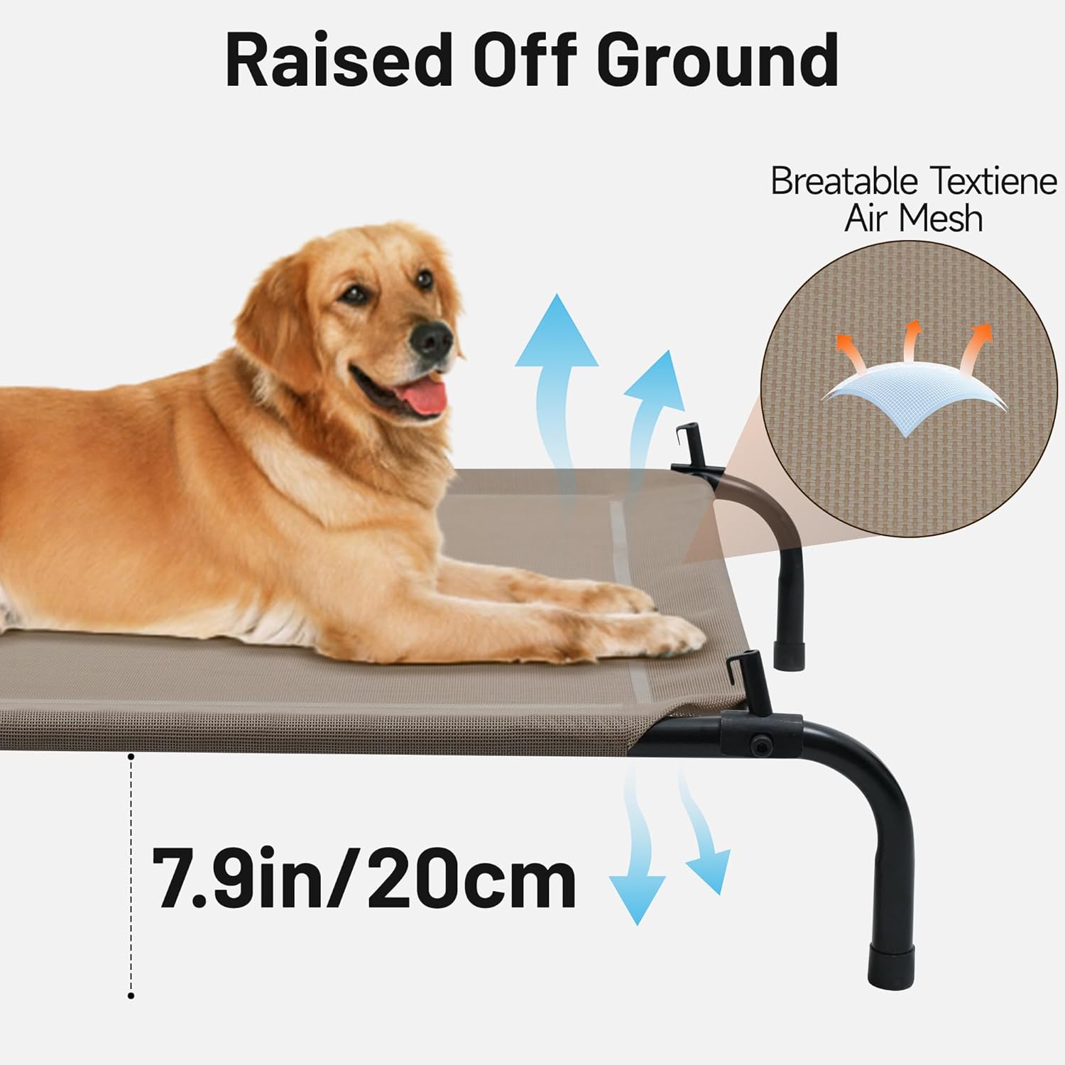 High-quality Materials and Firm Structure: Made of sturdy, durable Textilene fabric with breathable mesh. The dog bed is flexible and supportive, provides airflow, hoses clean, and is tough enough to withstand a dog’s scratching paws.