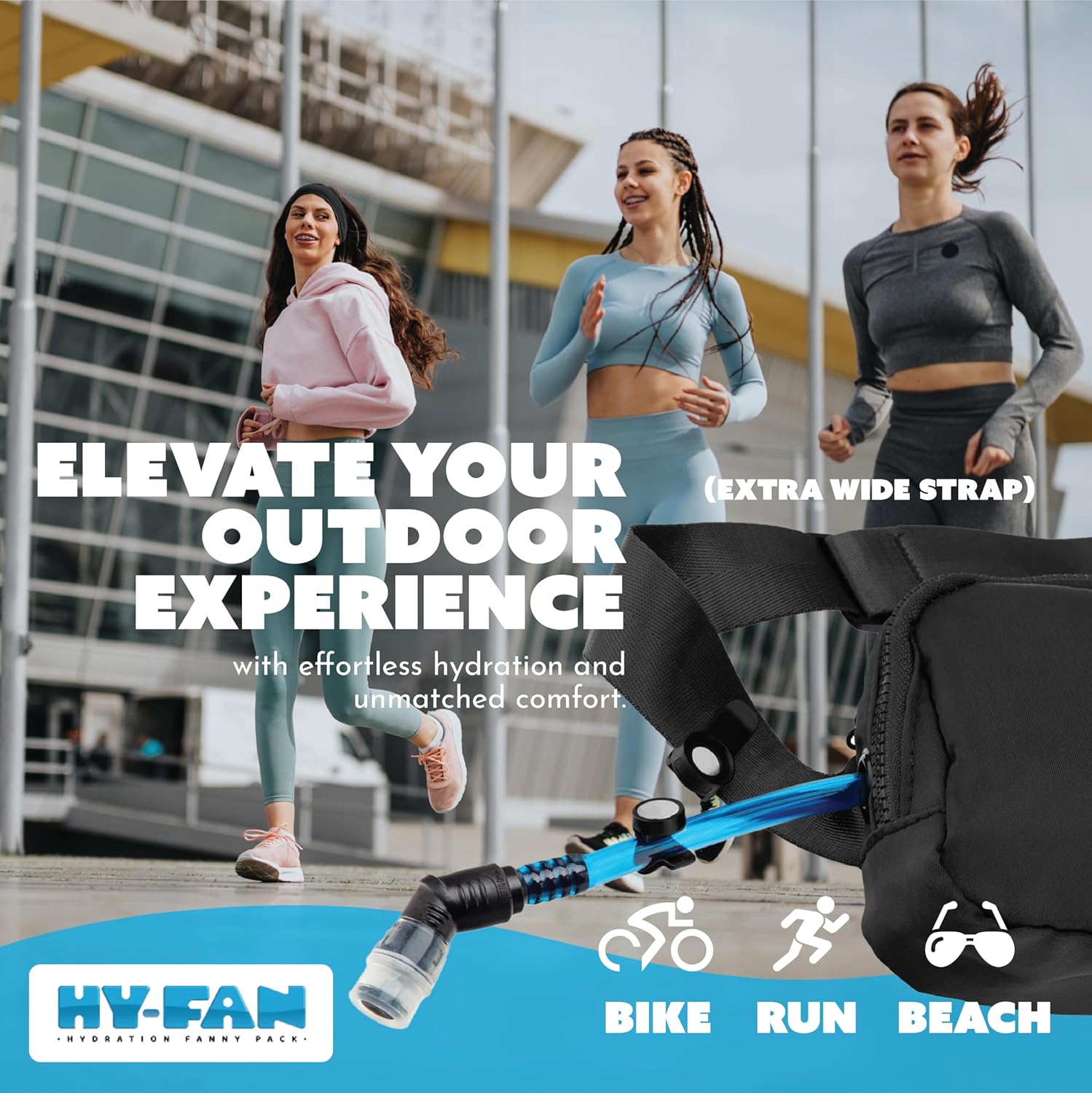 Hy-Fan is that innovative solution—a revolutionary sling style pack, complete with built-in hydration. After months of meticulous work in the garage, Hy-Fan was born, seamlessly integrating the convenience of a fanny pack with the practicality of a hydration system. The result is a first-of-its-kind product that enables its wearers to carry essentials and stay hydrated without feeling weighed down.