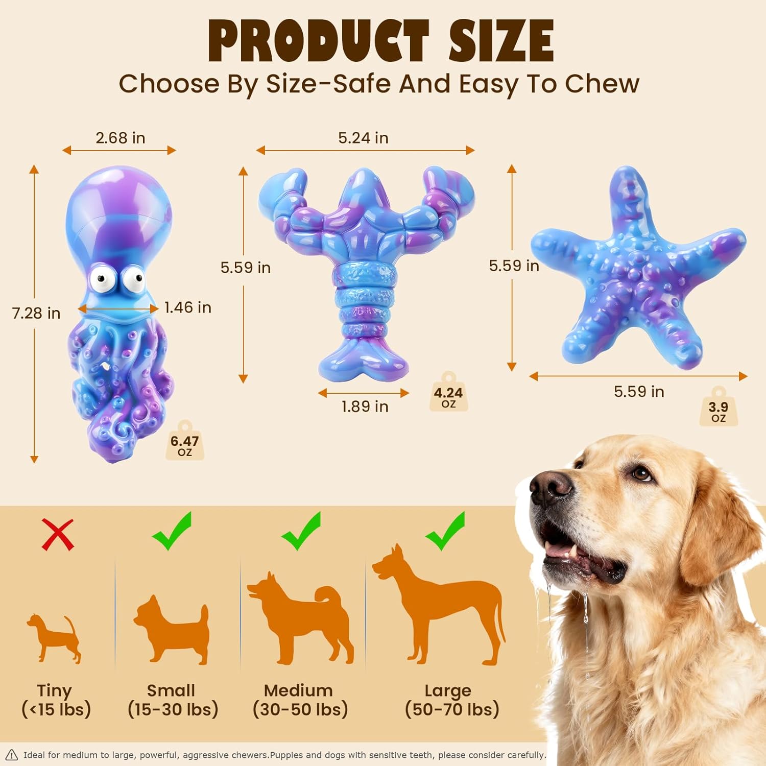 High-Value Ocean-Themed Tough Dog Toys for Aggressive Chewers: Enjoy triple the fun with this 3-pack of ocean-themed dog chew toys, featuring a starfish, octopus, and shrimp. Each is made from durable, bite-resistant material designed for aggressive chewers to satisfy natural chewing instincts and promote healthy habits. These dog toys to keep them busy provide endless entertainment, keeping your pet engaged even when you’re away. Perfect for daily play and mental stimulation.