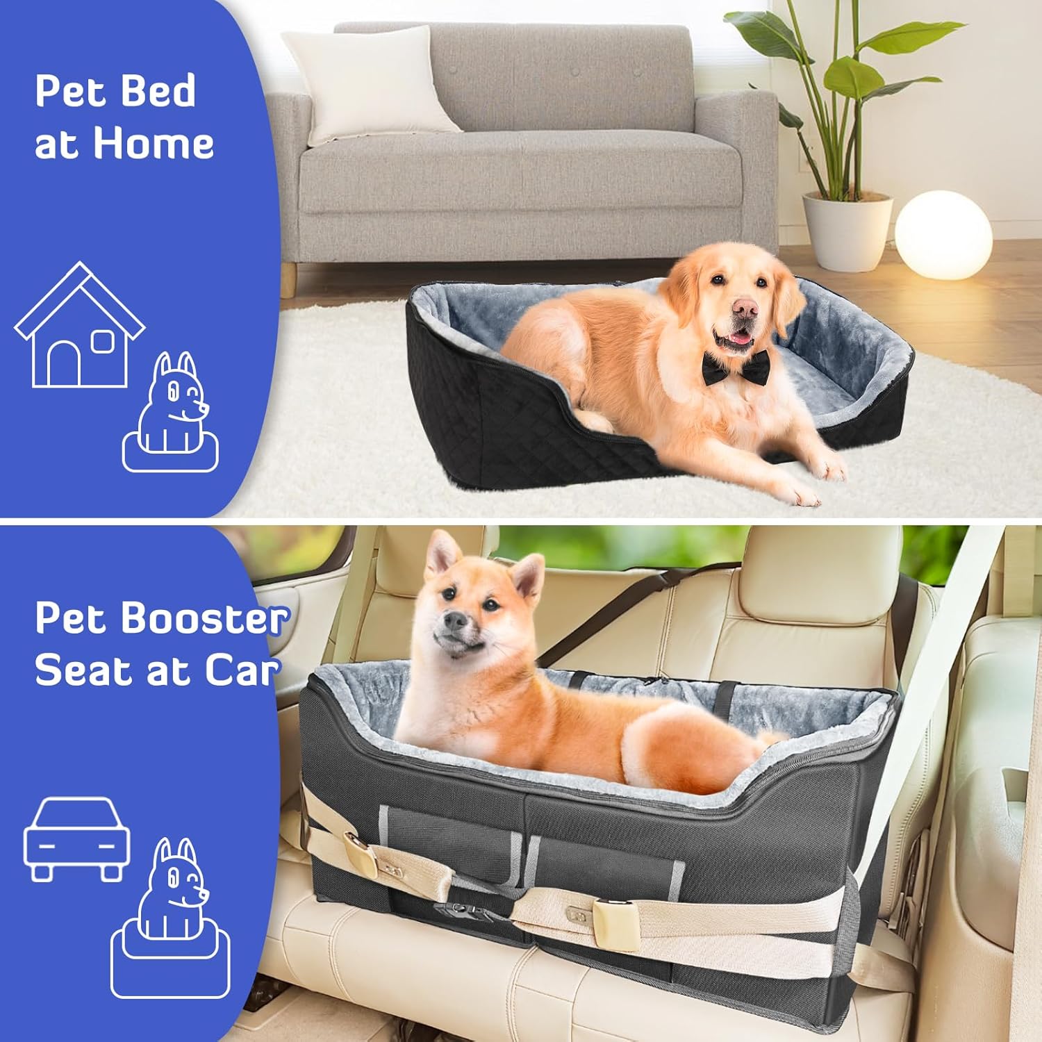 【Universal Year-Round】Made of durable 600D Oxford cloth material and used together with the plush cushion, this puppy car seat booster can be connected to the cushion with a zipper. The cushion of the doggie car seats is reversible, with Oxford cloth for summer and plush for winter, creating a comfortable environment for your pet all year round.