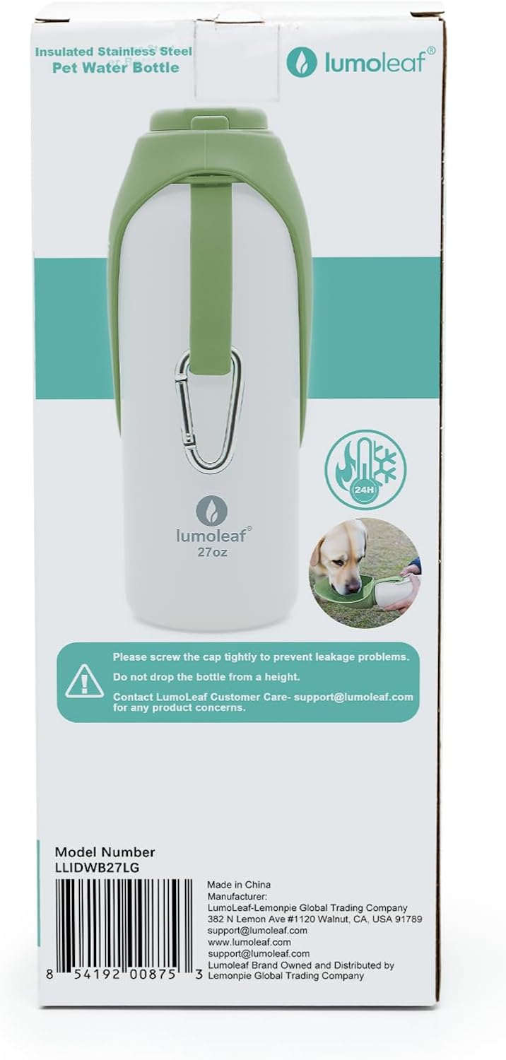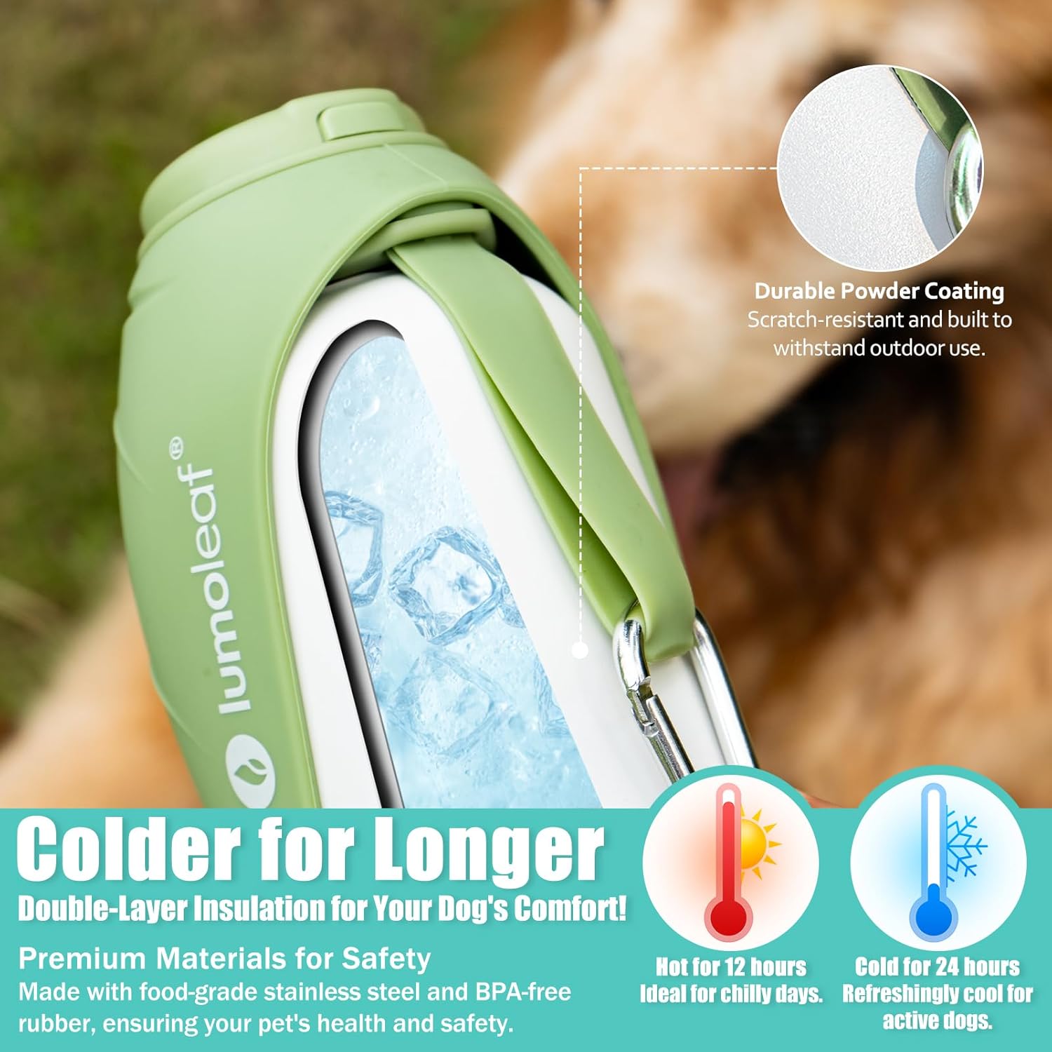 🛡️ LumoLeaf Insulated Dog Water Bottle 27 oz Stainless Steel – Keep Water Cool or Warm, Portable Pet Water Bowl for Travel, Wide Mouth for Easy Ice Filling & Cleaning (Green, 27 oz) — Safety, Comfort & Current Price (Review)