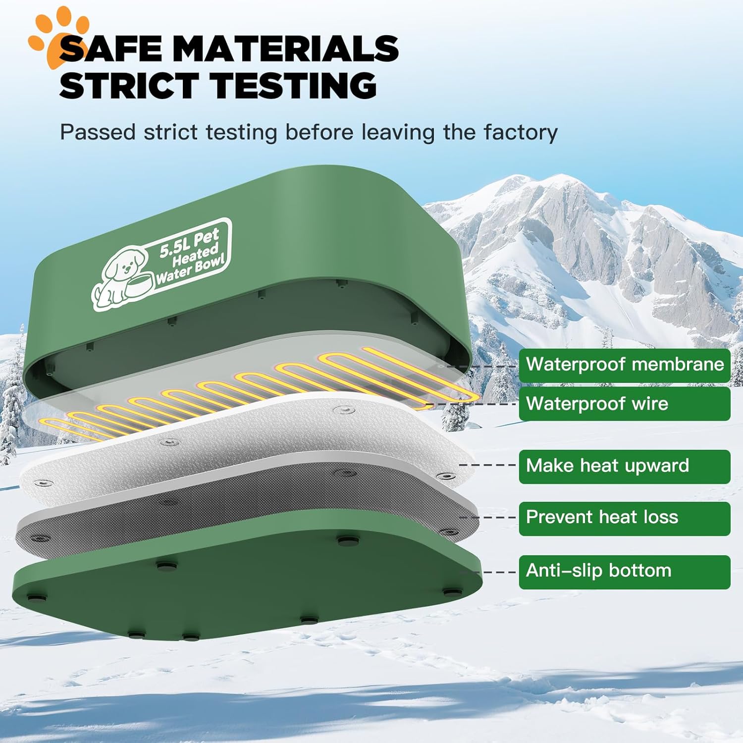 Outdoor-Ready, BPA-Free & Long-Lasting – Made from heavy-duty BPA-free materials, this winter pet water heater stands up to snow, wind, and freezing temperatures. The stable rectangular base prevents tipping, while the smooth surface makes cleaning fast and easy—because your pets deserve clean, safe water every time.