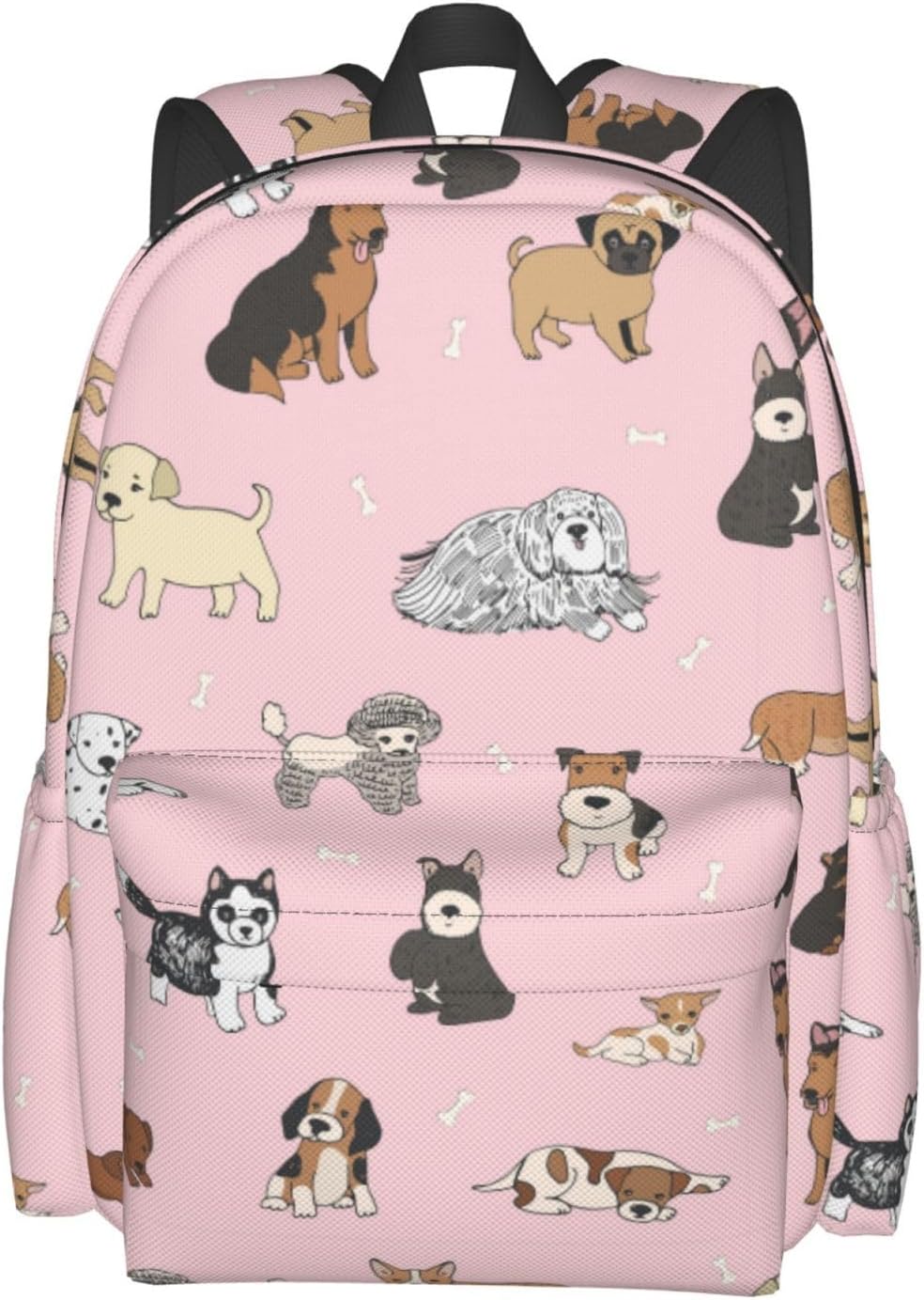 【Multiple Compartment】: Featuring 1 x main compartment, 1 x front pocket, and 1 x internal compartment. The casual bookbag can easily accommodate laptops, iPads, chargers, clothes, snacks, wallets, textbooks, notebooks, and more. Additionally, 2 x side pockets are convenient for storing items like keys, phones, pens, umbrellas, water bottles, and juice boxes