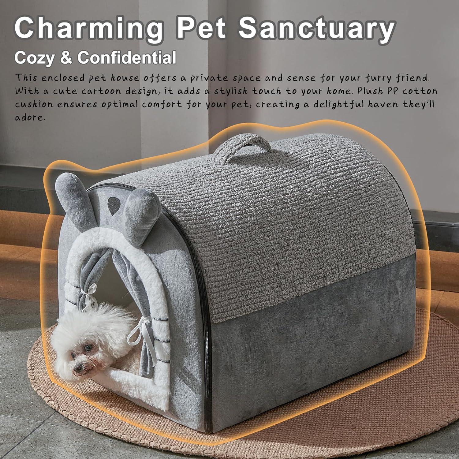 Sense of Security: The dog cave offers a private for your cat and dog. Close the door curtain for warmth in winter or open it for airflow in summer, ensuring comfort and security for your furry friend