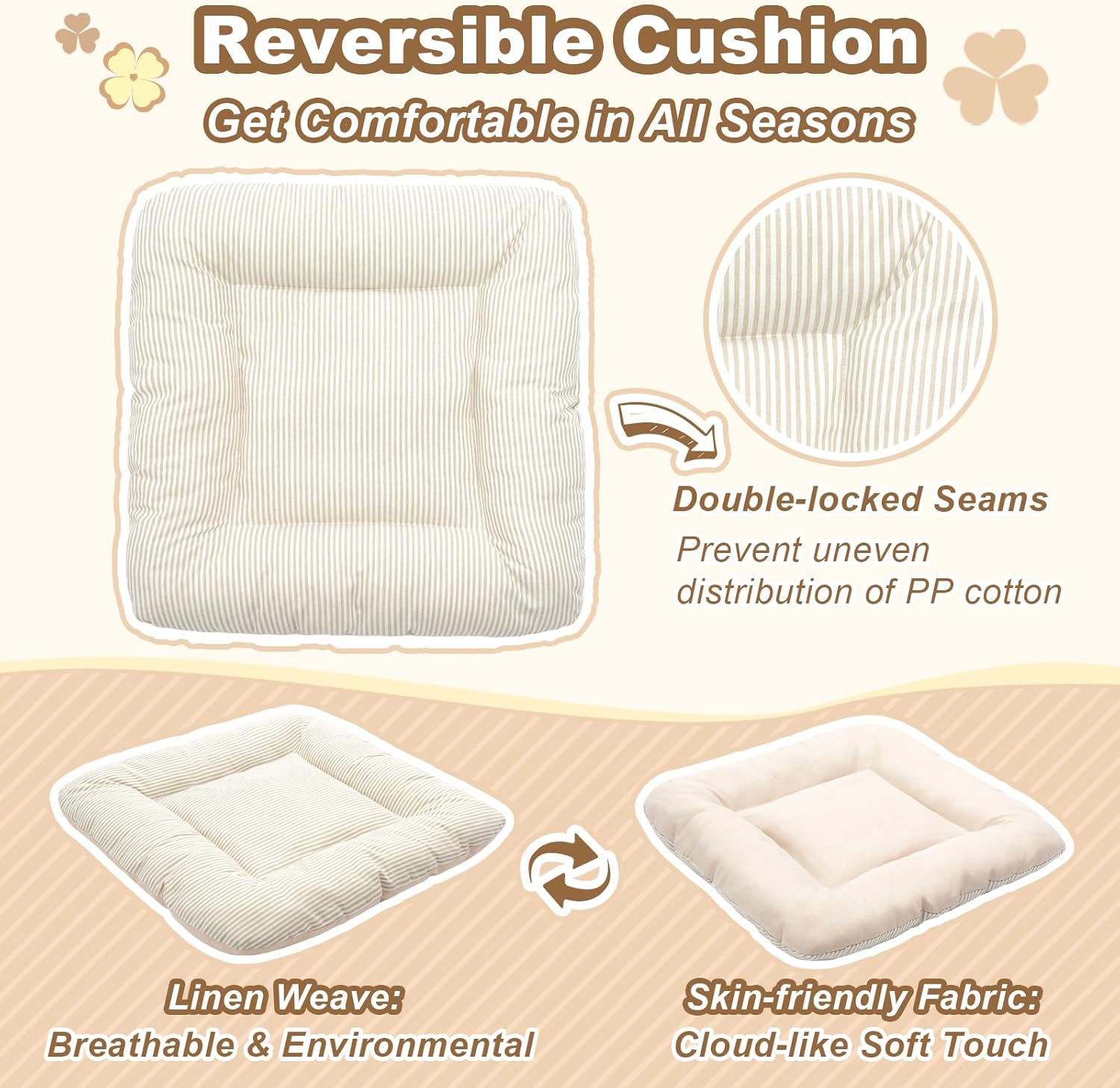 Washable Pet Teepee: Double-side cushion can available for all seasons. Machine-washable cover and pad make cleaning this dog bed with cover cave a breeze—just toss them in the Washing machine and enjoy hassle-free maintenance