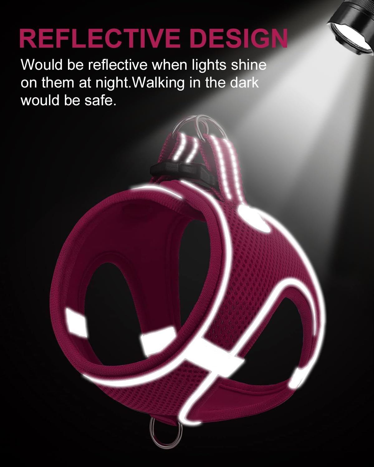 Reflective Design: This dog harness features 360° highly reflective strips and 4 reflective wide bands for visibility in the dark. Includes a quick-release buckle for added safety
