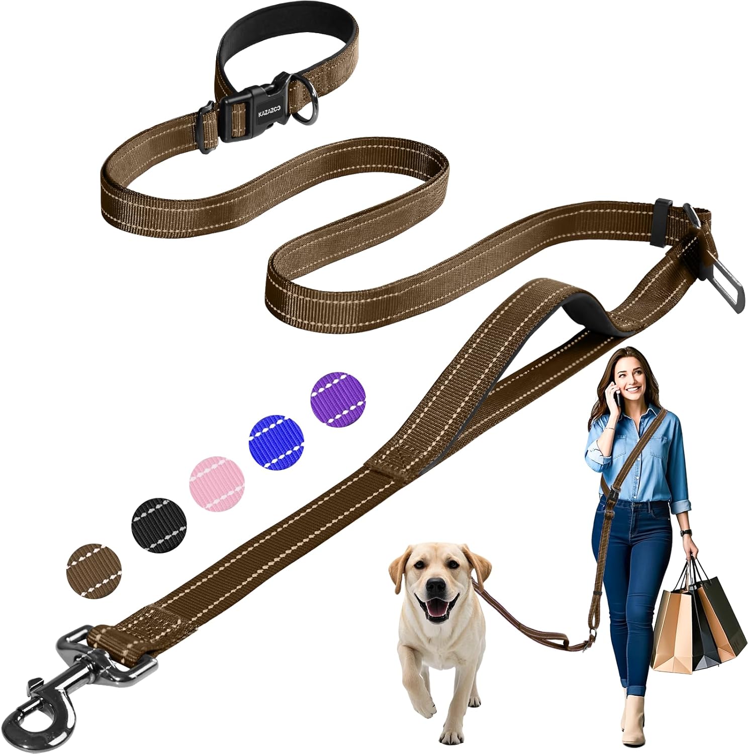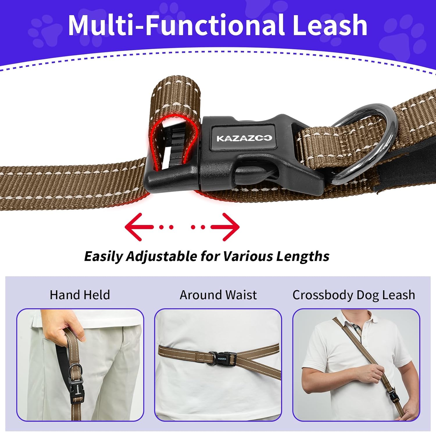 Kazazoo Crossbody & waist Dog Leash: Hands-Free Dog Leash Multifunctional Double Leash with adjustable length & no pull dog leash handle. The length of the dog leash is adjustable from 6 feet to 9.5 feet (75-114 inches) to adapt to different needs and usage scenarios.3 IN 1 Long hands free dog leash Use as shoulder strap, waist belt or handheld!
