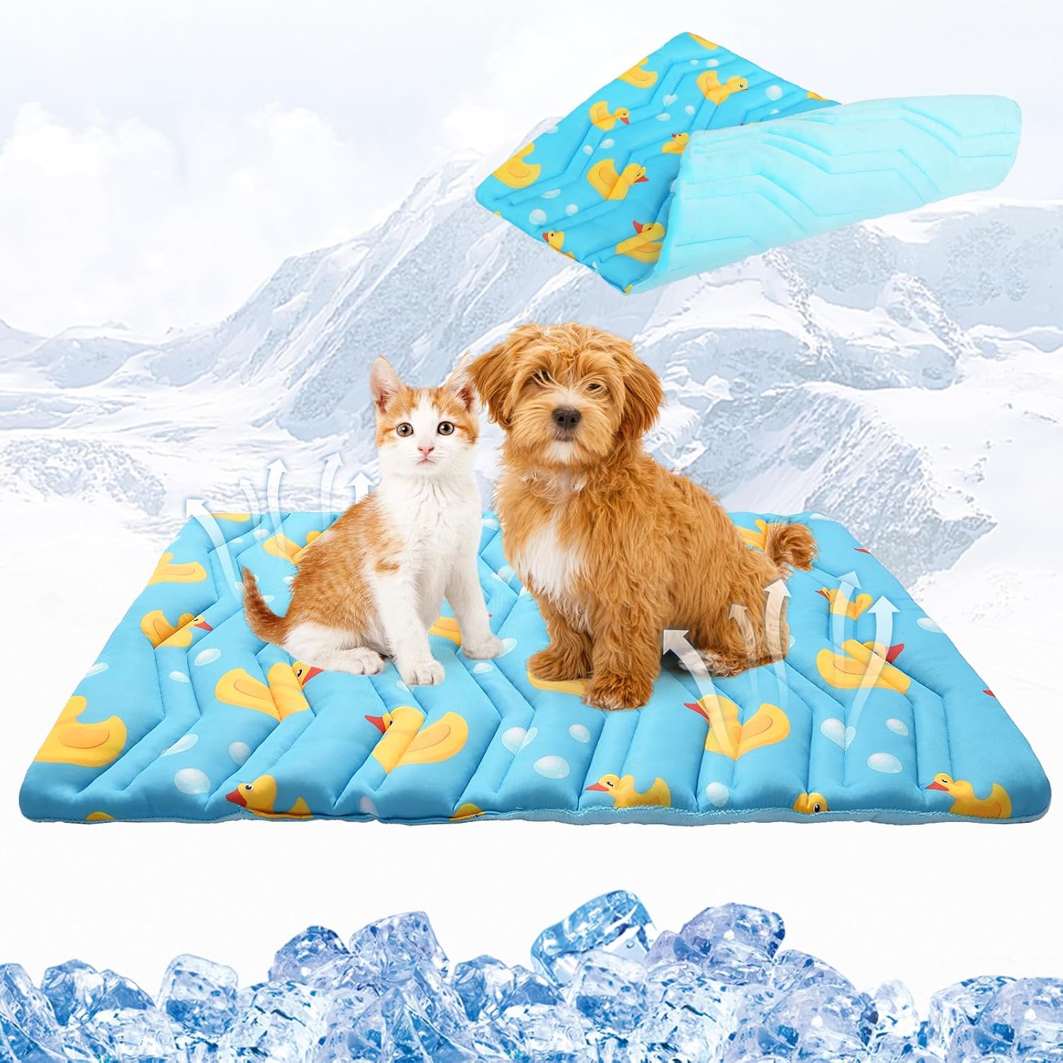 Kooltail Dual-Sided Dog Cooling Mat – Cute Duck Design, Washable & Waterproof