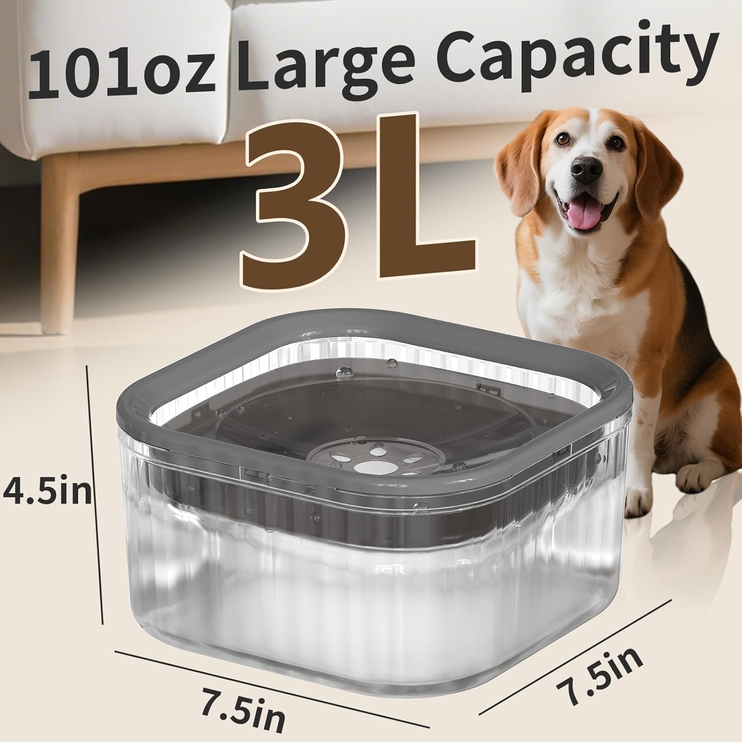 3L Large Capacity: This spill proof dog water bowl features a 101oz extra-large capacity, making it ideal for multi-pet households or large dogs. No need for frequent refills and ensures your pets always have enough water.