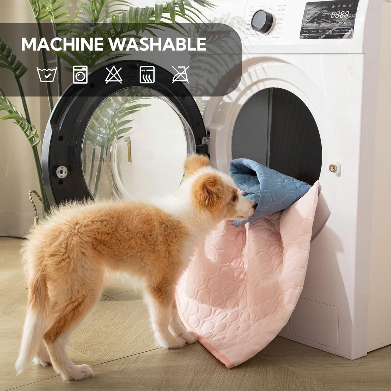 EASY CARE: Machine and hand washable, this cooling mat is durable. Our mat features a built-in TPU fabric that effectively blocks urine and spills. Cleaning is easy! Simply toss it in the washing machine (gentle cycle) or hand wash – it’s designed for hassle-free maintenance.