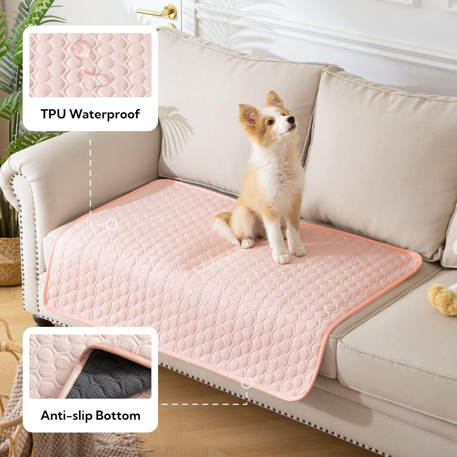 EASY CARE: Machine and hand washable, this cooling mat is durable. Our mat features a built-in TPU fabric that effectively blocks urine and spills. Cleaning is easy! Simply toss it in the washing machine (gentle cycle) or hand wash – it’s designed for hassle-free maintenance.