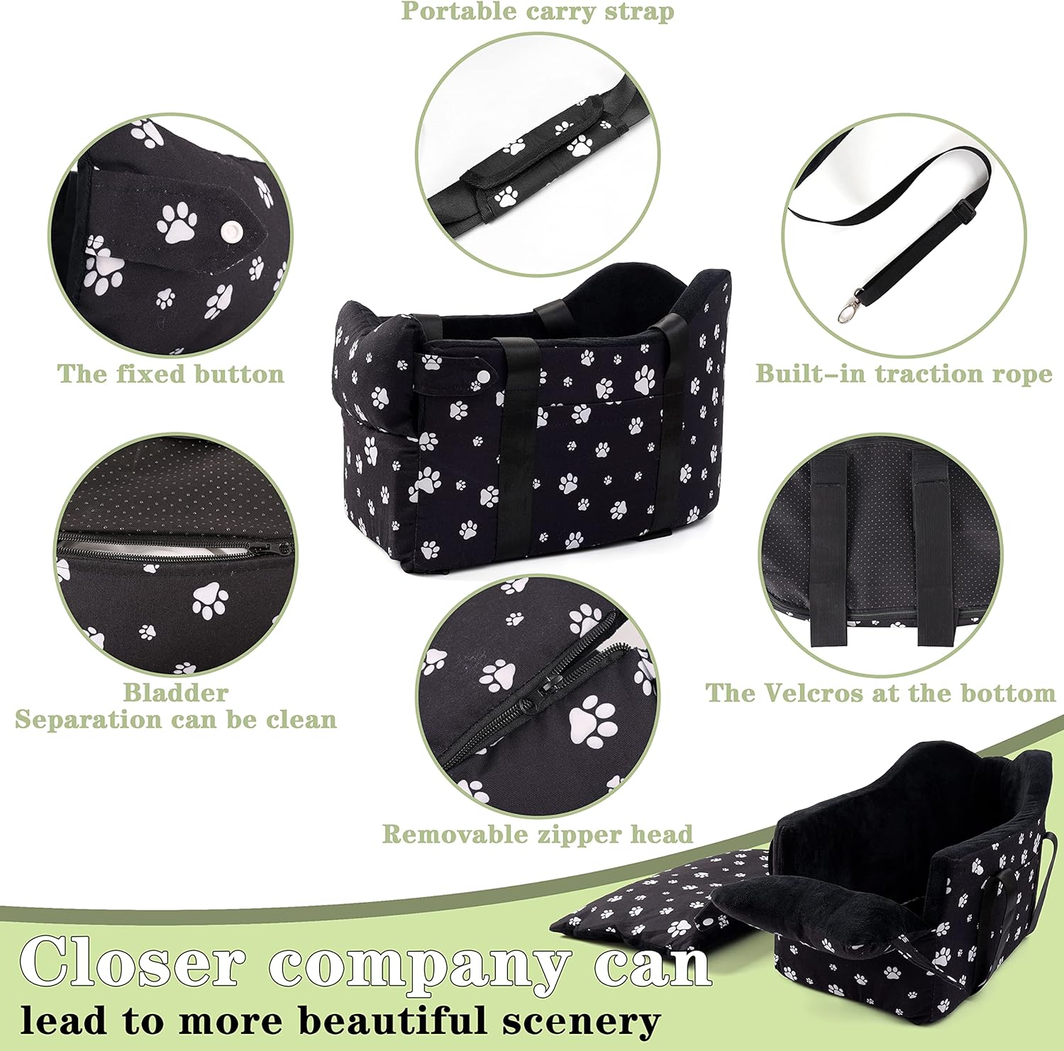 Secure & Comfortable Design for Pet Travel This pet car seat features elastic straps that securely fasten it in place, preventing sliding and ensuring stability during car rides. Designed to fit most vehicles, it also includes adjustable leashes to keep your pet safely in place. Filled with memory foam for added comfort and support, the seat has a non-slip bottom and waterproof fabric, providing extra safety and peace of mind on every journey.