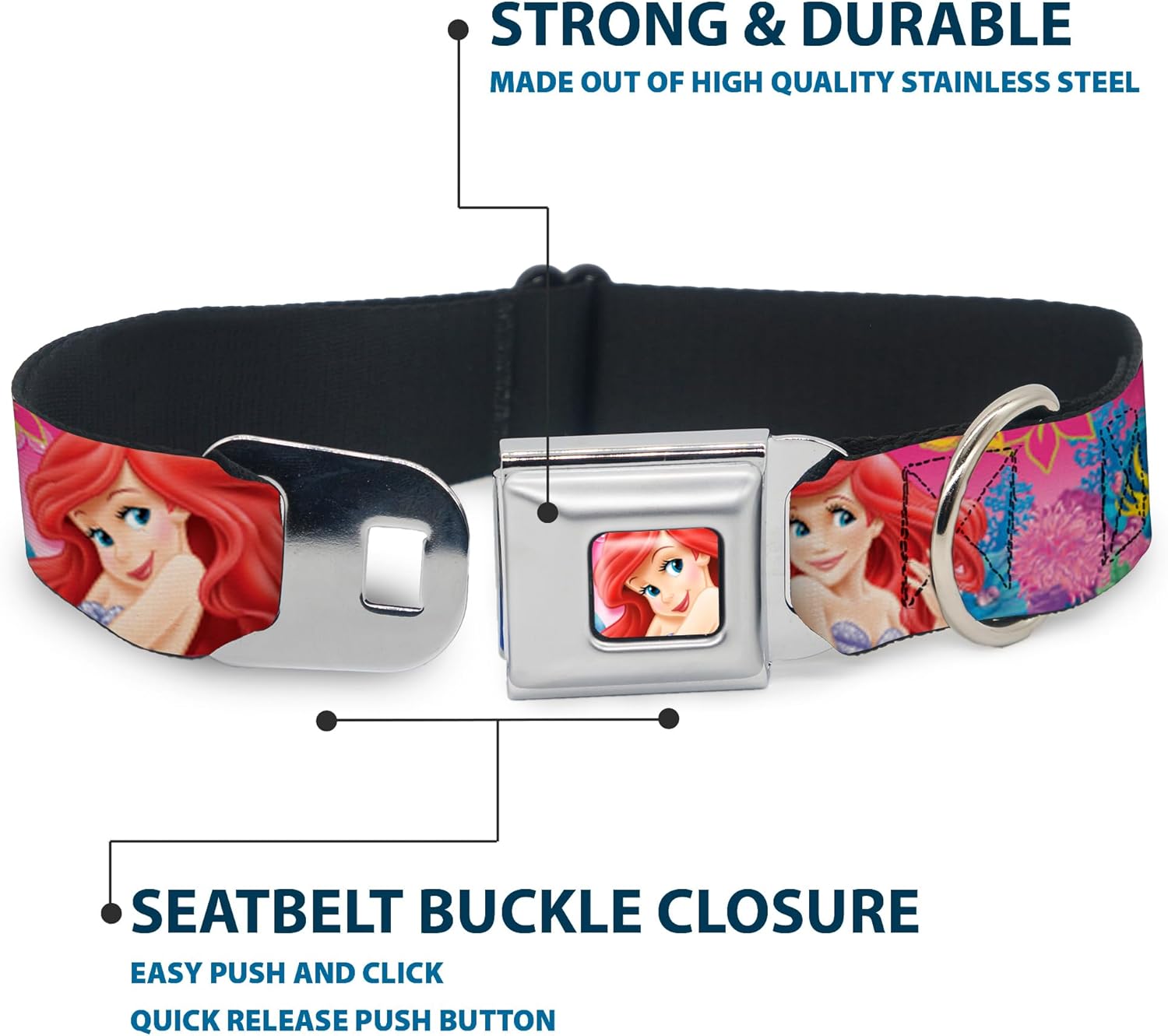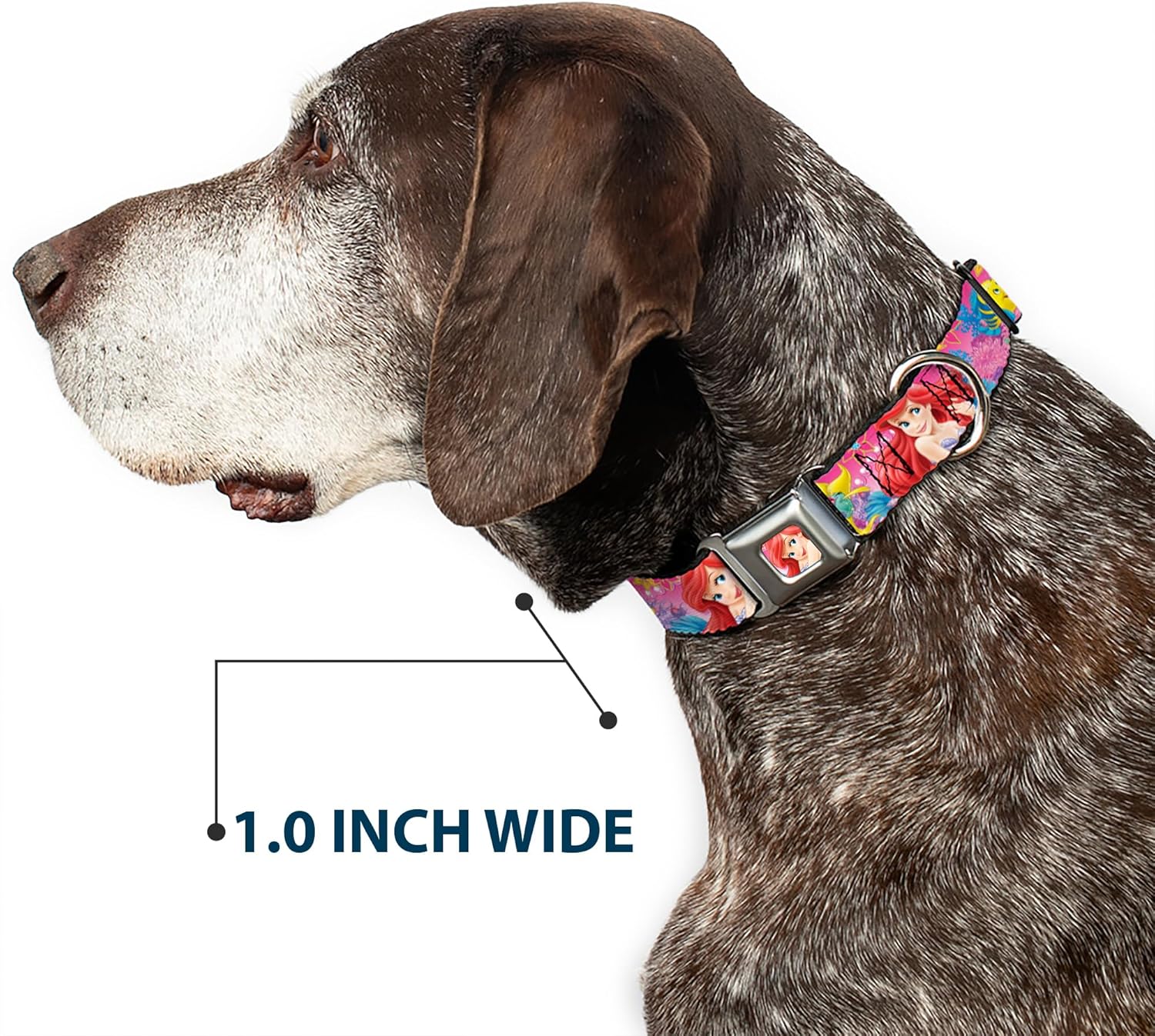 Buckle-Down Seatbelt Buckle Dog Collar – Ariel/Flounder/Fish Trio Poses Pinks – 1″ Wide – Fits 15-26″ Neck – Large
