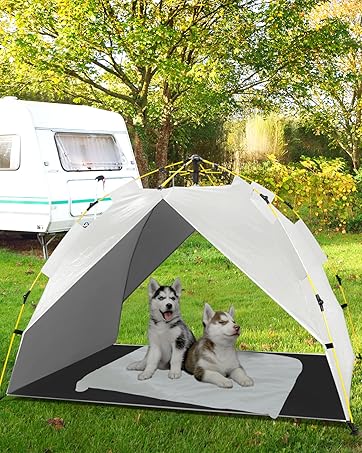 IDEAL FOR OUTDOORS – Lightweight portable design folds up for easy transport to the park, camping, etc. Provides piece of mind knowing your dog has shade and shelter outside