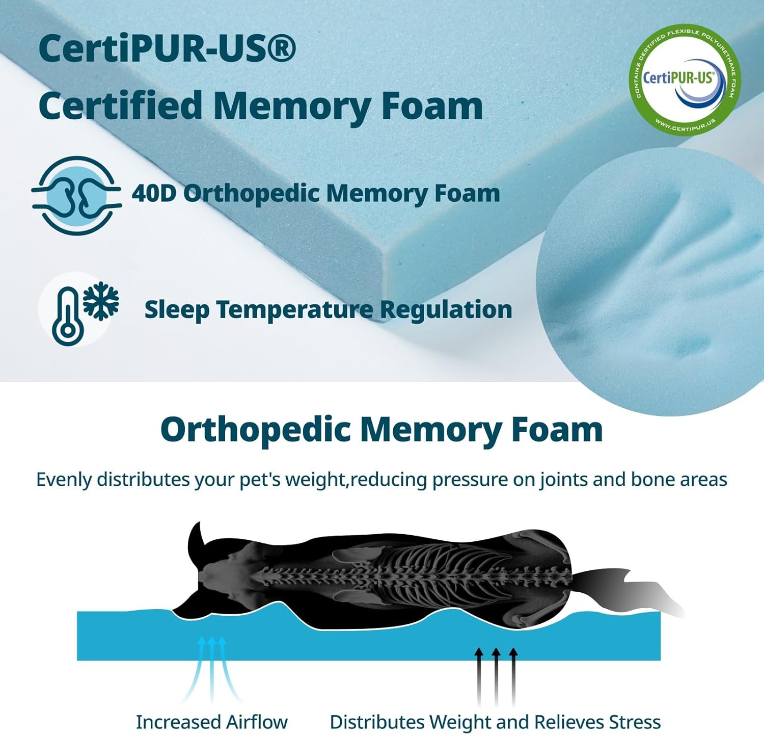 Memory Foam: Our dog crate pad is filled with 2-inch 40D orthopedic memory foam, providing perfect support and comfort. This allows dogs to relax and effectively relieve physical fatigue.