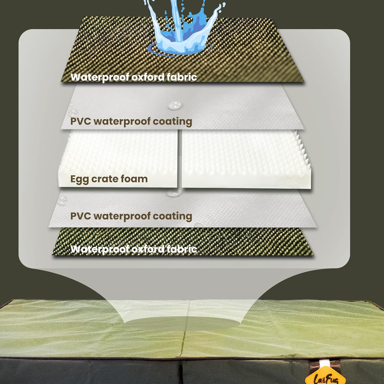 WATERPROOF DESIGN – Laifug outdoor dog bed is made of waterproof oxford cloth cover and waterproof zipper, which can be used in various scenes both indoors and outdoors.