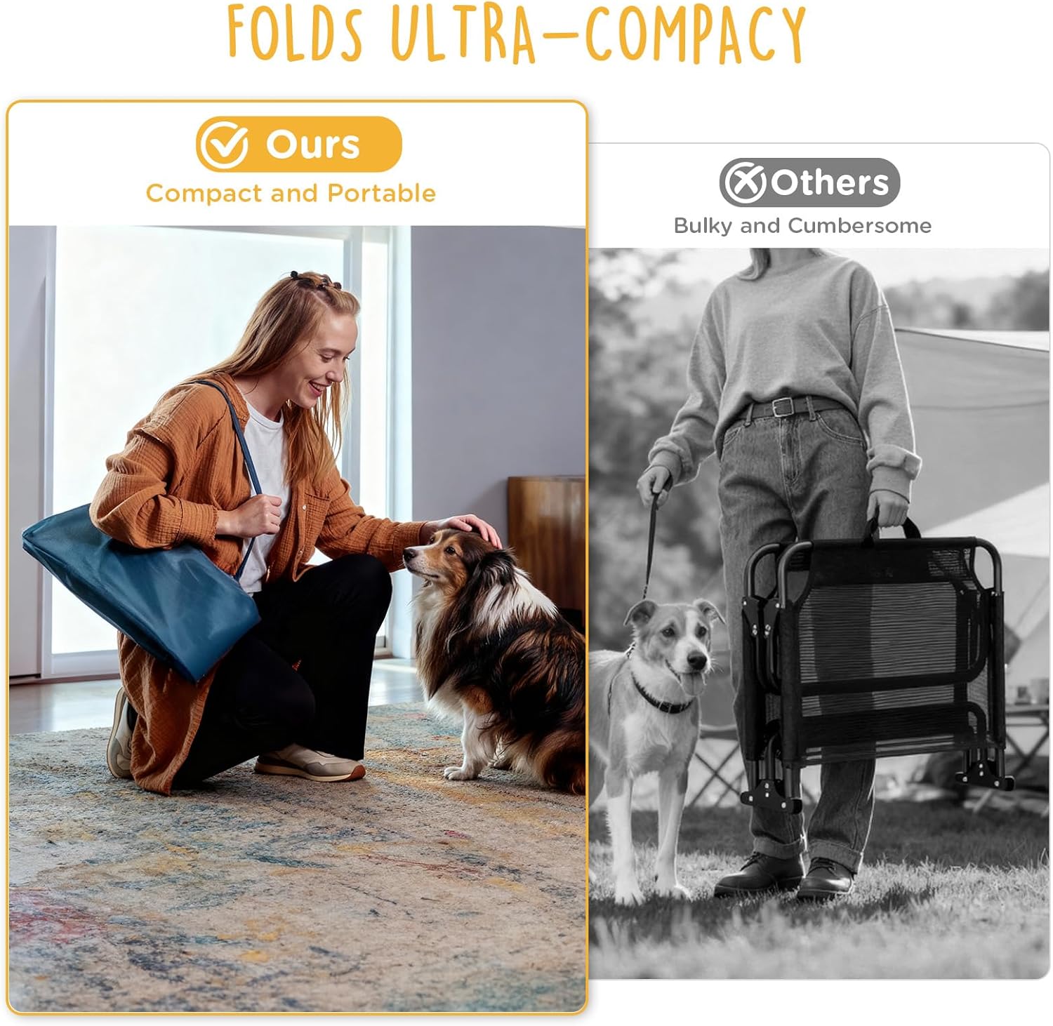 COMPACT & FOLDABLE: This large dog bed features an ultra small 25″x8.5″ folded size perfect for traveling & camping; zip it up in 15 seconds for a comfortable outdoor dog bed for your furry friend