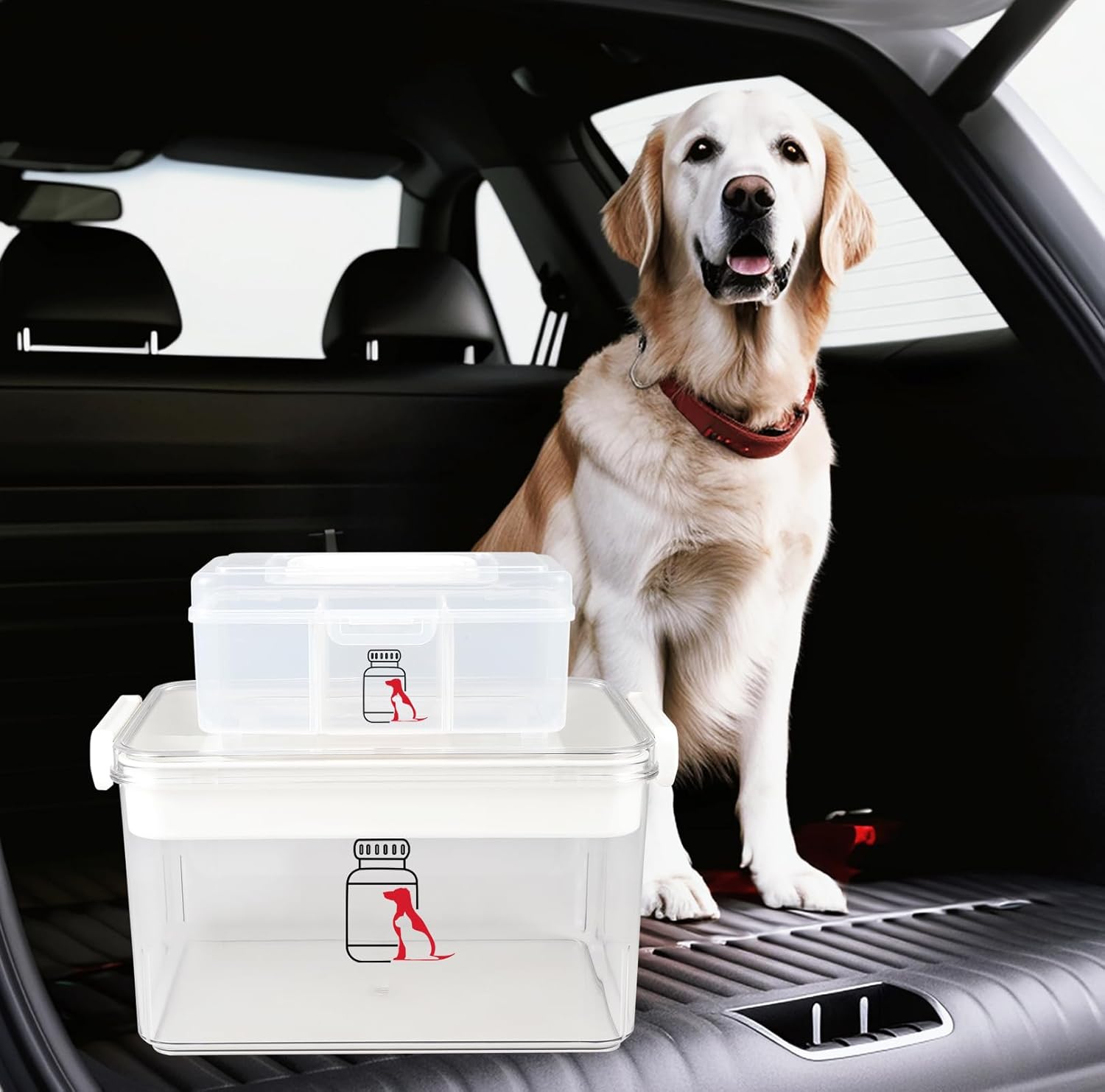 【Outdoor Dog Storage Organizer】-The medicine storage box for pet is made of high quality plastic. It holds heavy and put as much as essentials into the medicine cabinet organizer.Carrying handle on this portable first aid caddy makes it ideal for travel, camping, hiking, and packing in a rental car or work truck