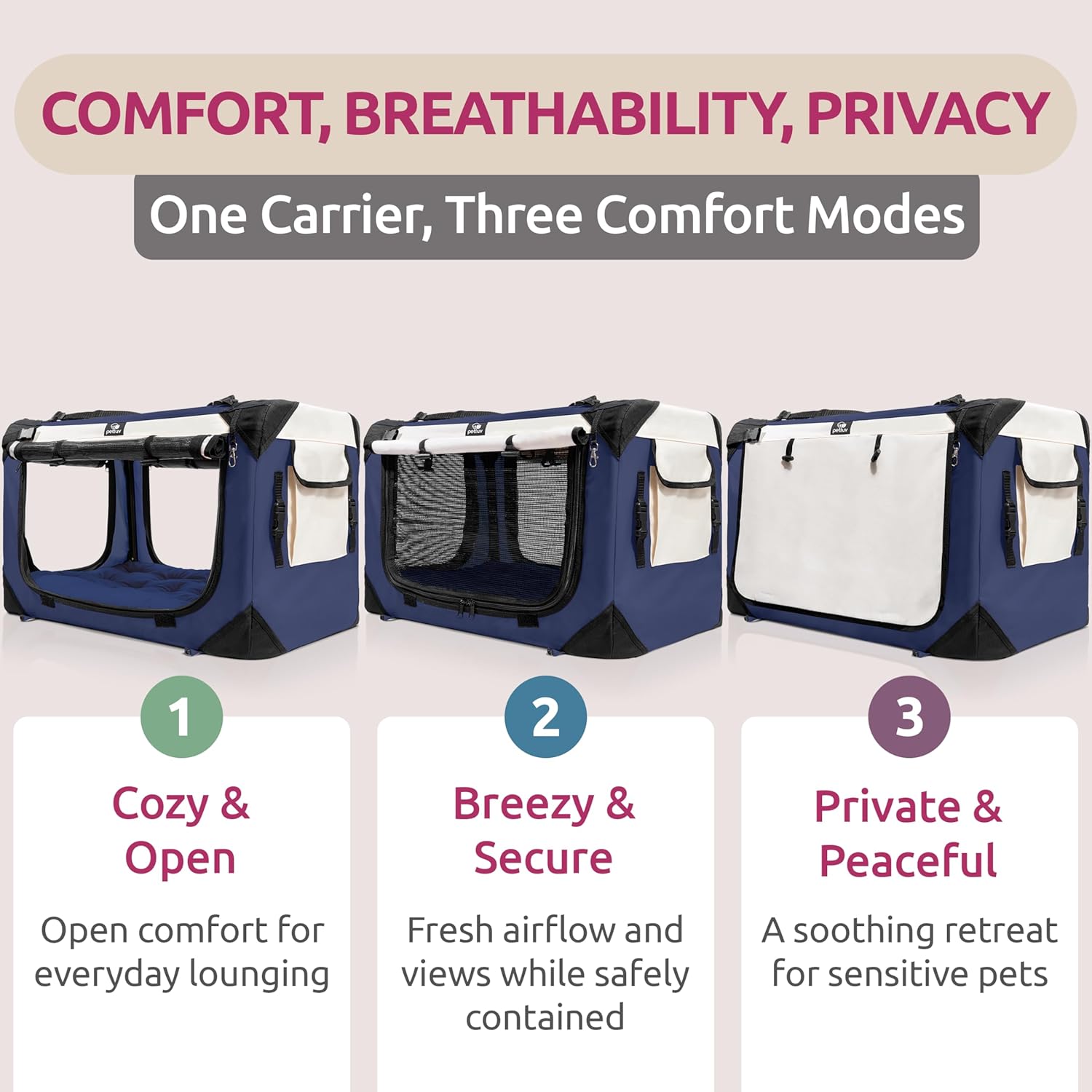4 EASY ACCESS DOORS: Top entry plus 3 side doors allow easier loading and removal at home, during travel, or vet visits, while also providing nearly all-around visibility for your pet