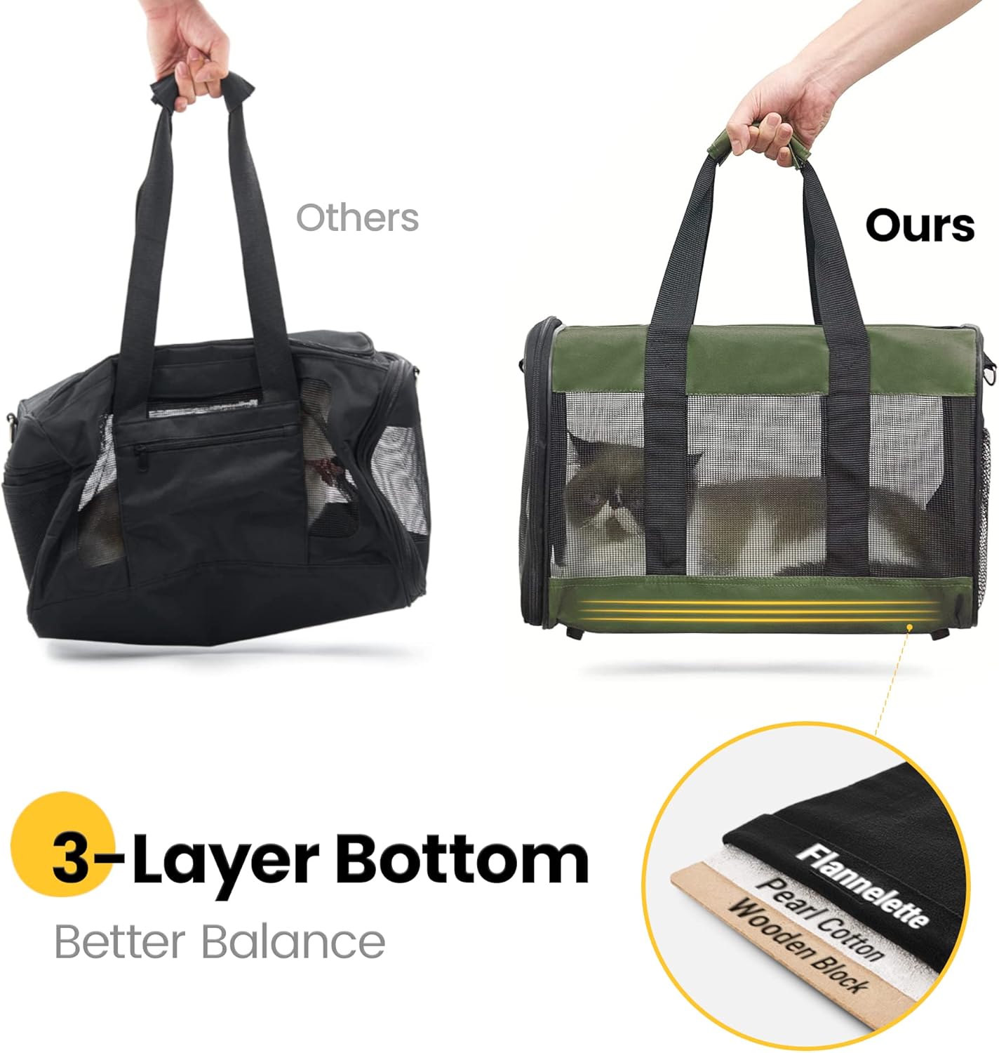 Large Soft-Sided Pet Carrier with Safety Leash for Cats & Dogs Up to 20 lbs – Green