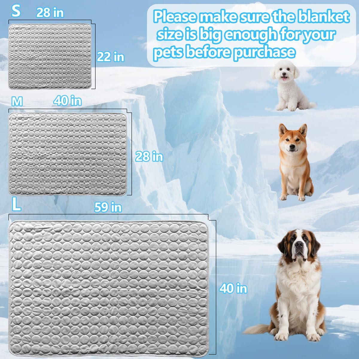 Multiple Colors: This dog cooling mat measures 59 inches by 40 inches (150 centimeters by 100 centimeters). It is available in four colors: blue, grey, pink, and brown, making it suitable for matching with dog friends of different coat colors