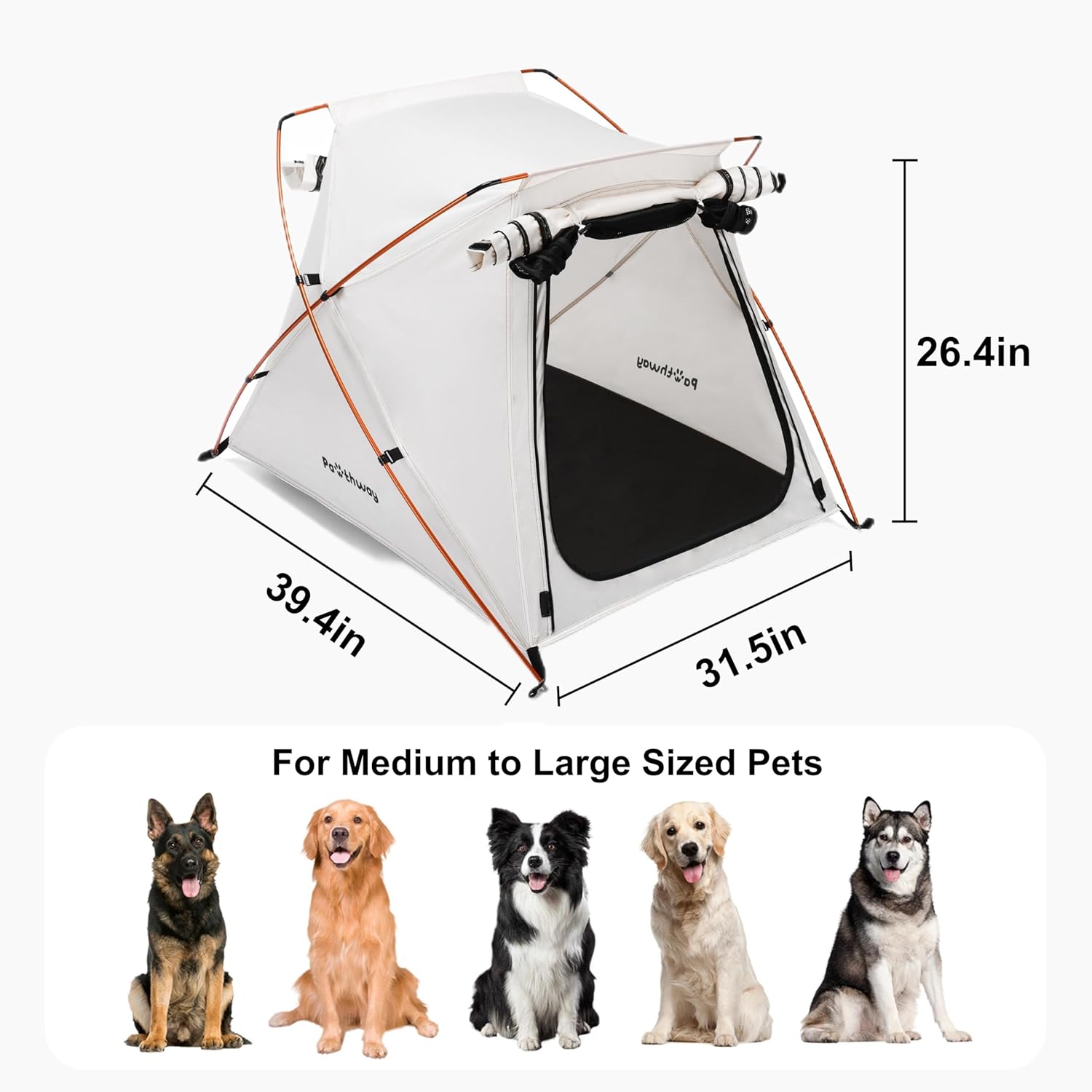 Waterproof and Wind-Resistant: Made from 3000 PU waterproof Oxford fabric, this pet tent keeps your pet dry on rainy days and damp ground. Includes ground stakes for added stability in windy conditions. Also makes a great dog house outdoor for yard, garden, patio, or porch.