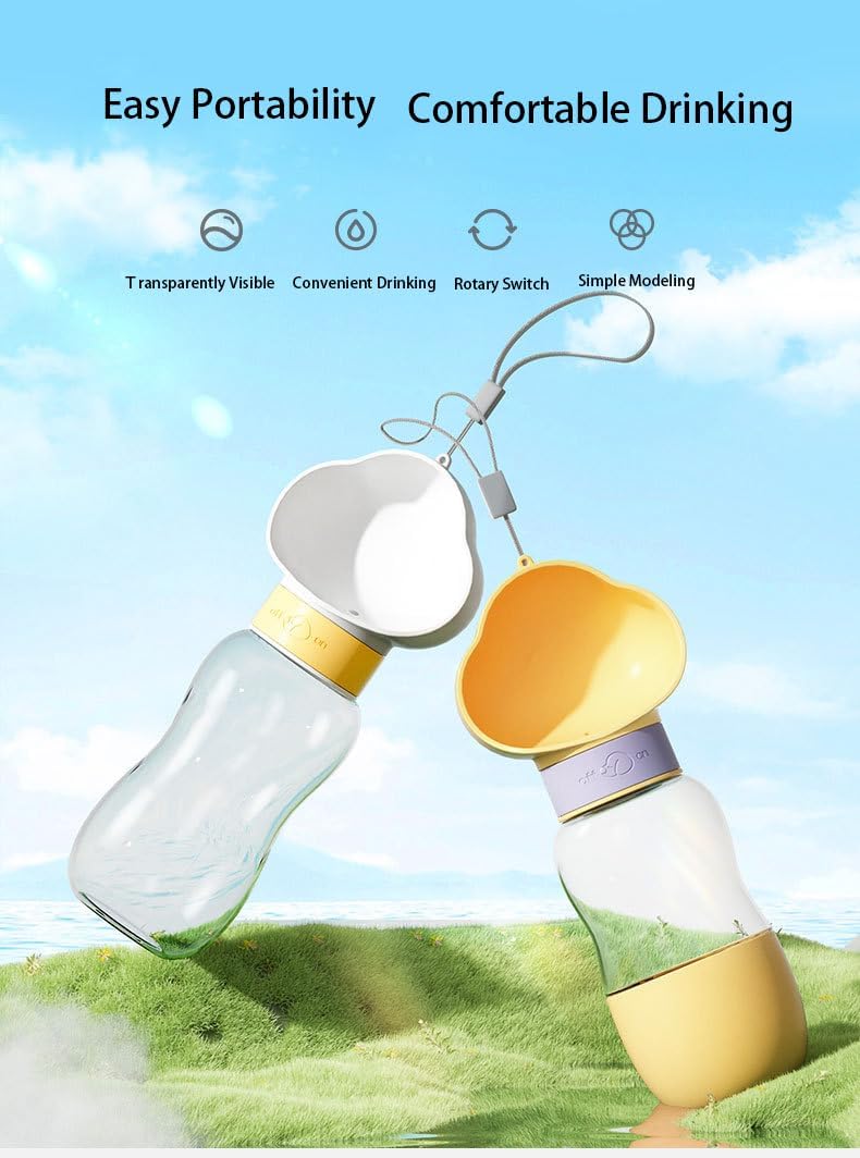 [Color and Size] The outdoor drinking bottle is available in white and yellow, size: L25.5xW10xH7cm, capacity 350ml + feeding 200ml, weight: 240g.