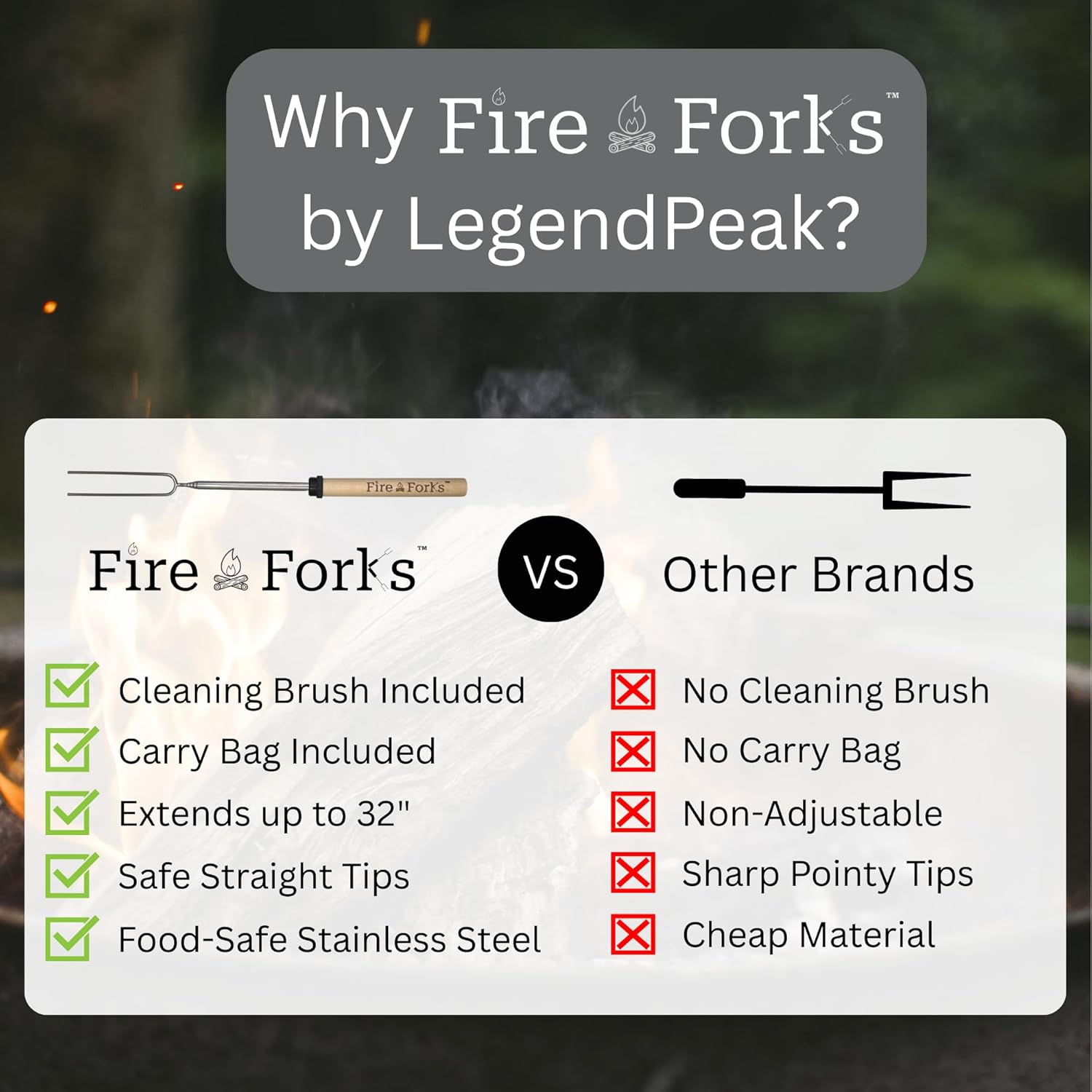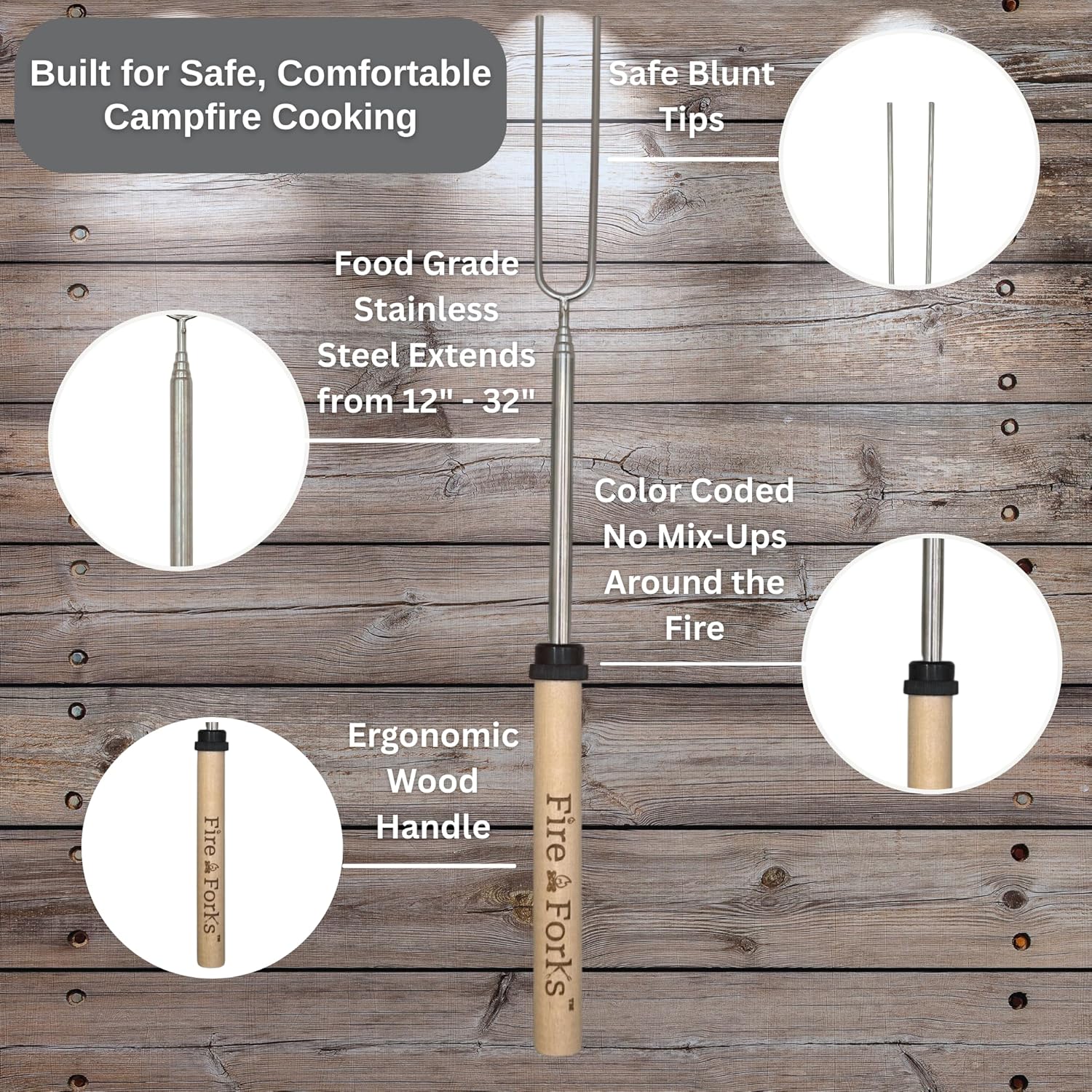Extra Long & Fully Extendable – Telescoping design extends up to 32 inches, keeping hands safely away from flames while allowing even, consistent roasting. Adjustable length ensures comfort for both kids and adults.