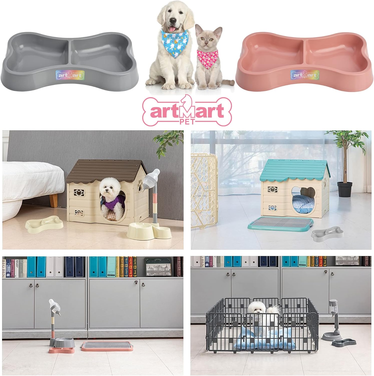 Features a cute dog bone, double bowls design