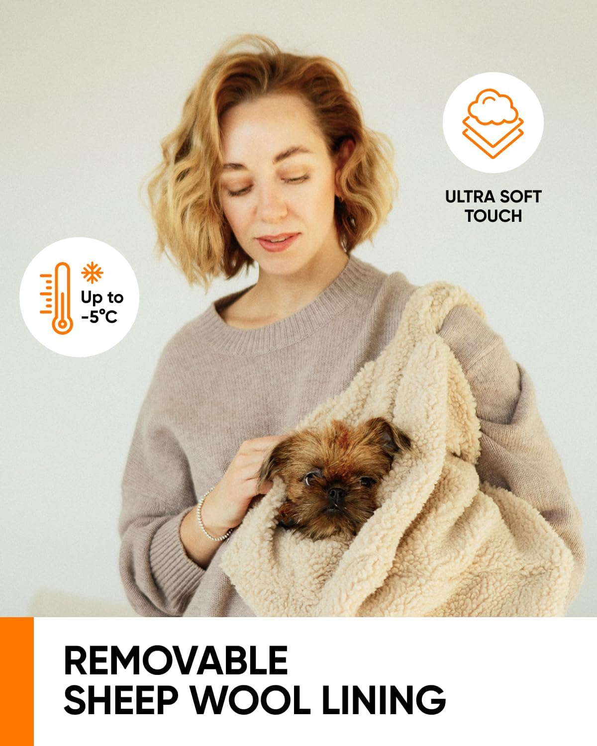 SIMPLE CLEAN & CARE. Zip-out wool/organic-cotton cushion is machine-washable; exterior wipes clean in seconds. A small dog carrier that also serves as a breathable soft cat carrier and a tidy small dog travel bag for errands and vet visits.