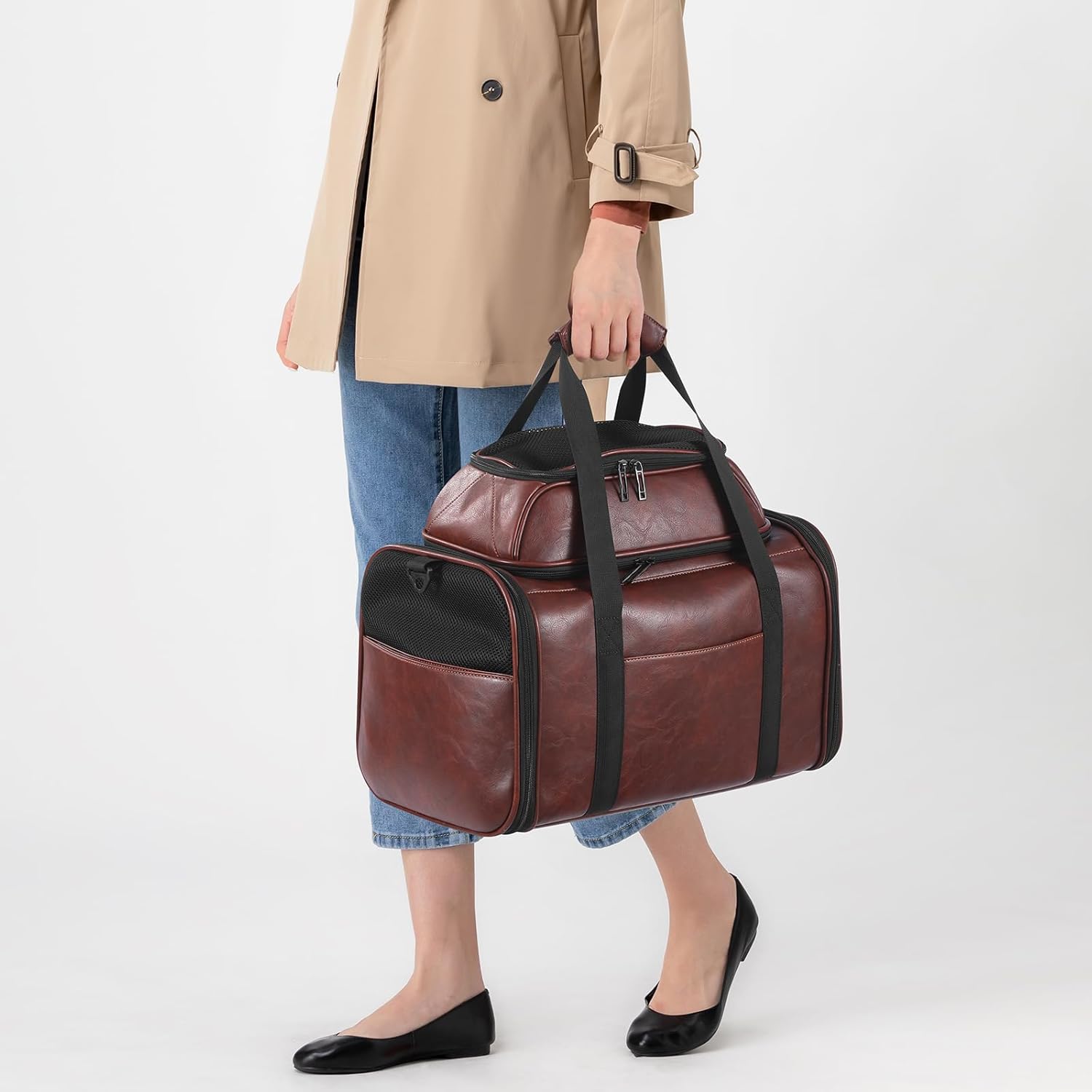 ✈️ Premium Leather Top Expandable Pet Carrier for Small Dogs & Cats Under 15 lbs, Airline Approved Collapsible Soft-Sided Luxury Travel Bag Coffee — Airline-Approved Dog Carrier Review & Current Price