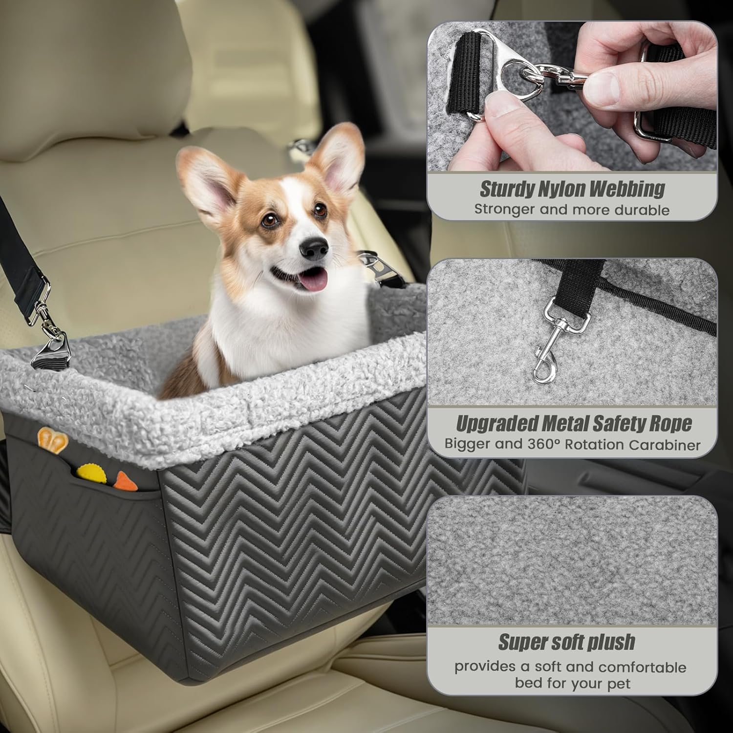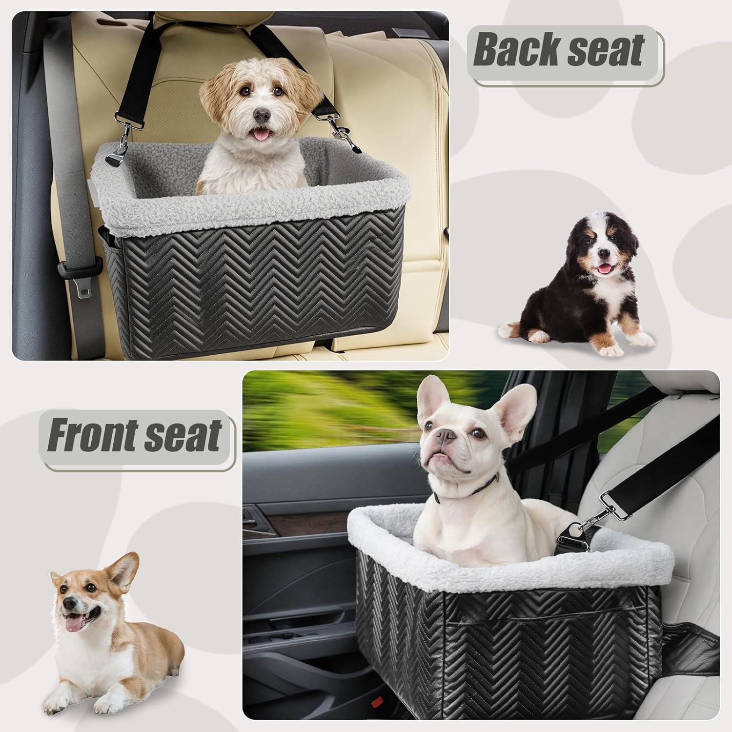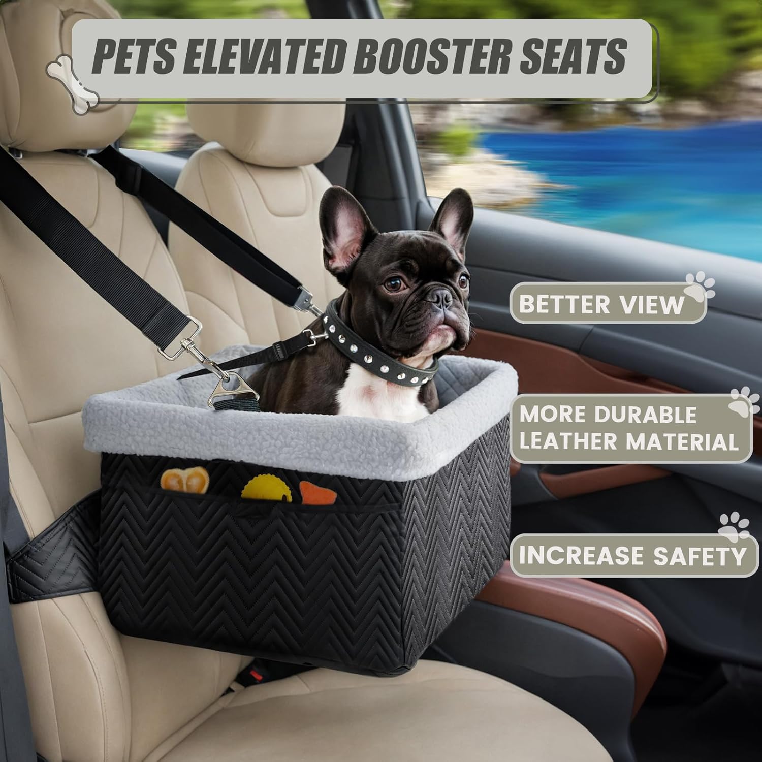 🧳 Leather Dog Car Seat for Small Dogs Under 20lbs, Dog Booster Seat with Metal Frame Construction Double-Layer Oxford Puppy Car Seats with Safety Leash Perfect for Small Pets Dogs Cats — Dog Travel Gear Review & Current Price