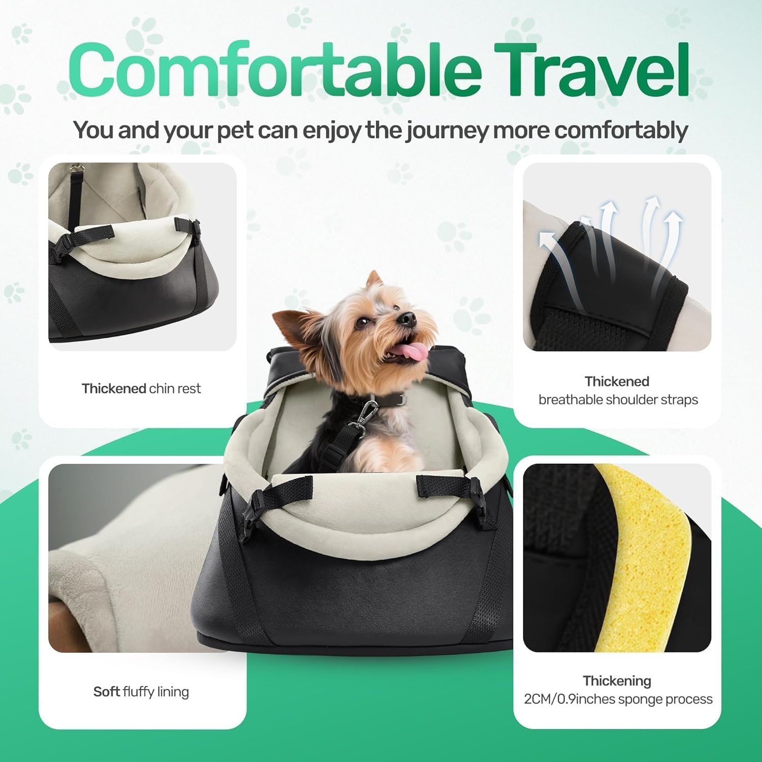 Multiple Secure & Durable: This dog carseats for small dogs is equipped with an adjustable back strap, two shoulder straps, a pet safety leash, and built-in D-buckle, this puppy car seat offers multiple layers of security. The rear pass-through design allows it to be secured with car seat belts or luggage handles.Whether driving or on the go, it stays firmly in place