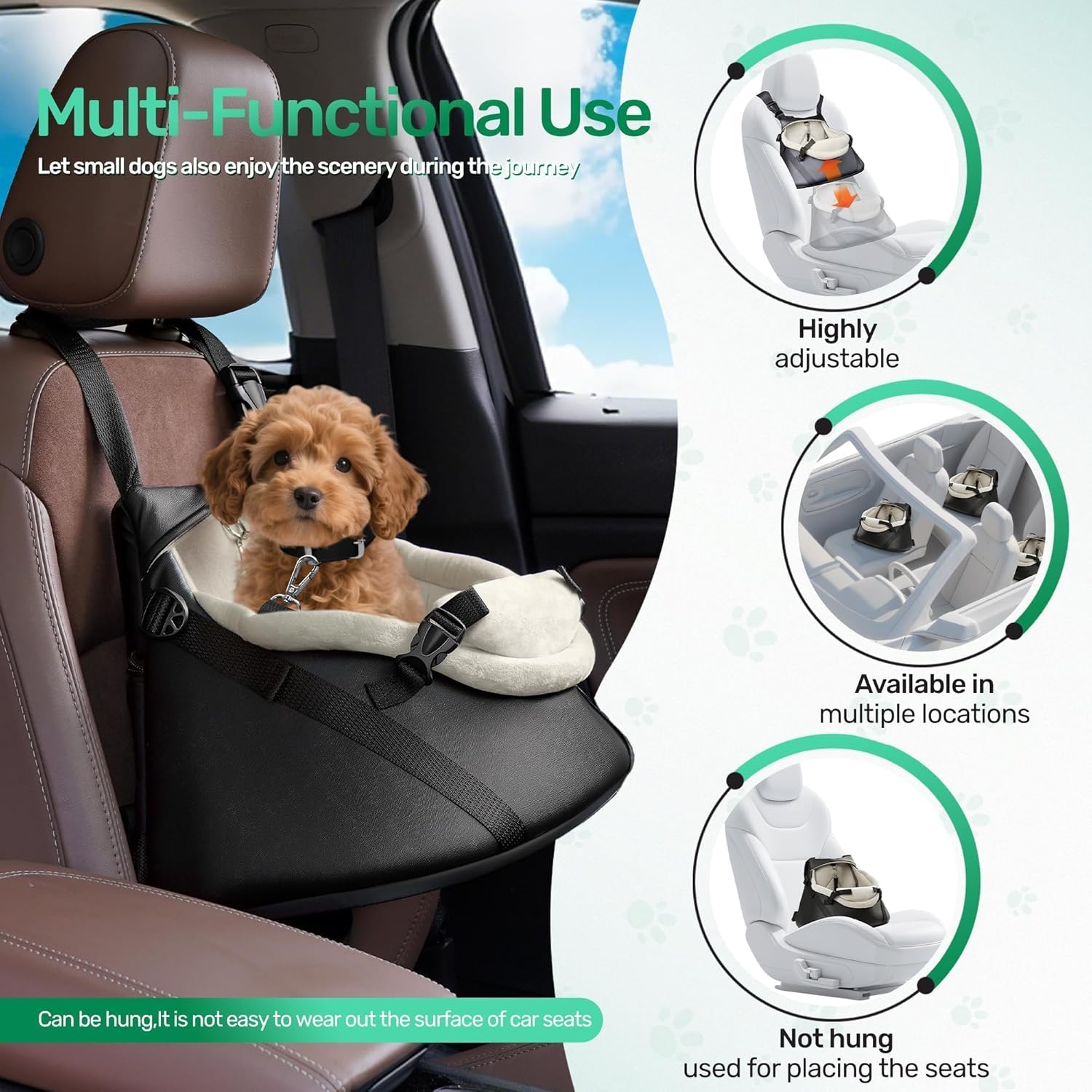 Easy to Install & Versatile Use: This small dog car seats under 7lbs offers two setups. Hang it by securing adjustable straps to the headrest or threading the seatbelt through the back rear pocket gap. Its adjustable design fits most vehicles front and rear seats. It can used as dog front carrier with adjustable cross straps ideal for road trips or outings