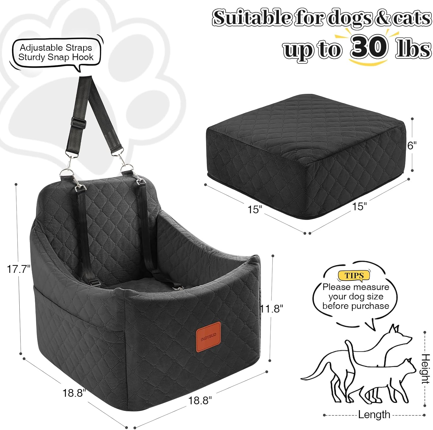 Ideal Size for Small and Medium dogs: Measuring 18.8 in (L)X 18.8 in (W) X 17.7 in (H), the pet car seat can accommodate all types of small and medium dogs up to 35 pounds, or two small dogs up to 15 pounds. It fits in the front or back seats of cars, SUVs and trucks. WARM TIP: Please measure your pet before purchasing.