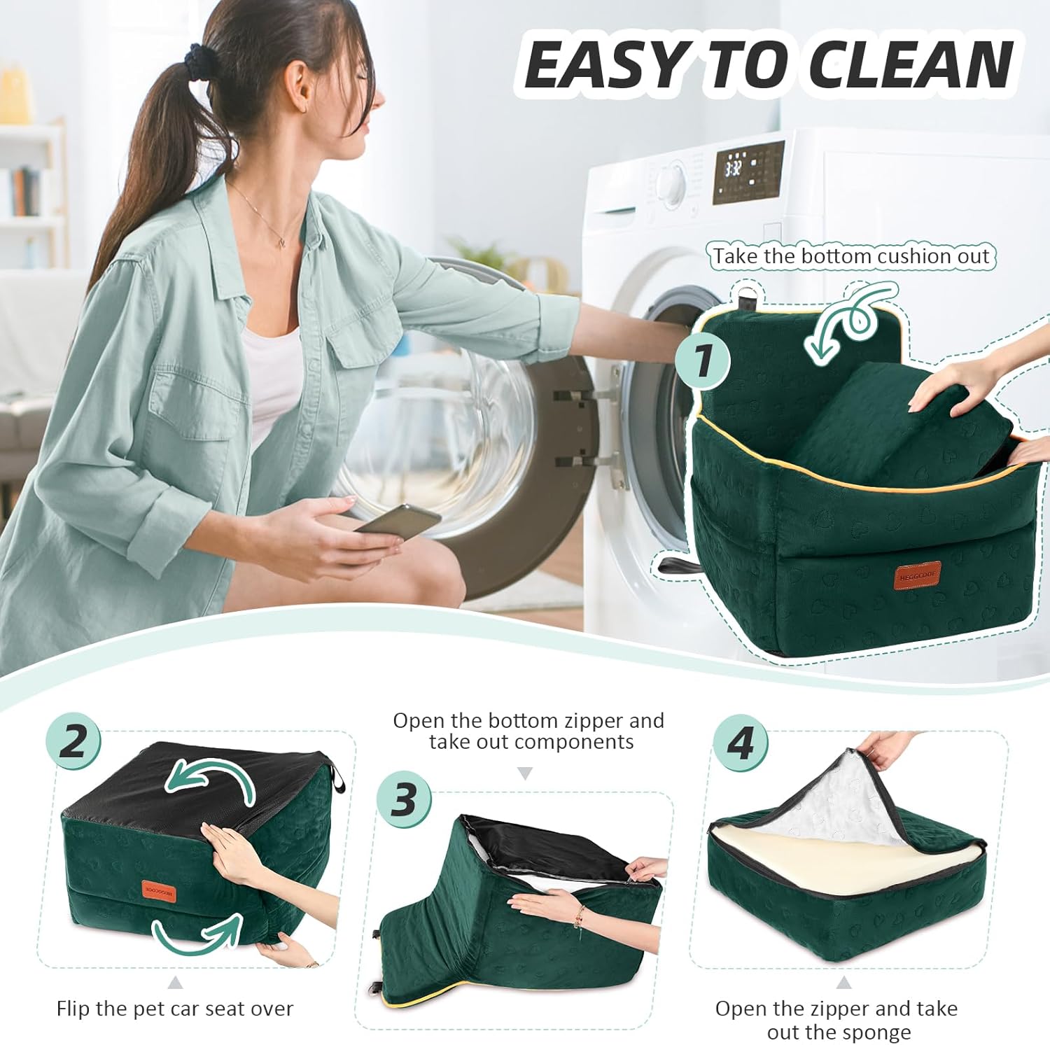 Multi-functional Use: The small dog car seat is not only suitable for vehicles, but can also be used as a dog bed at home, outdoors or in a tent, providing your dog with a comfortable resting space anwhere. It has a removable and washable cover, simply open the zipper and take out the sponge to clean the cover. Please note that the inner sponge is not washable