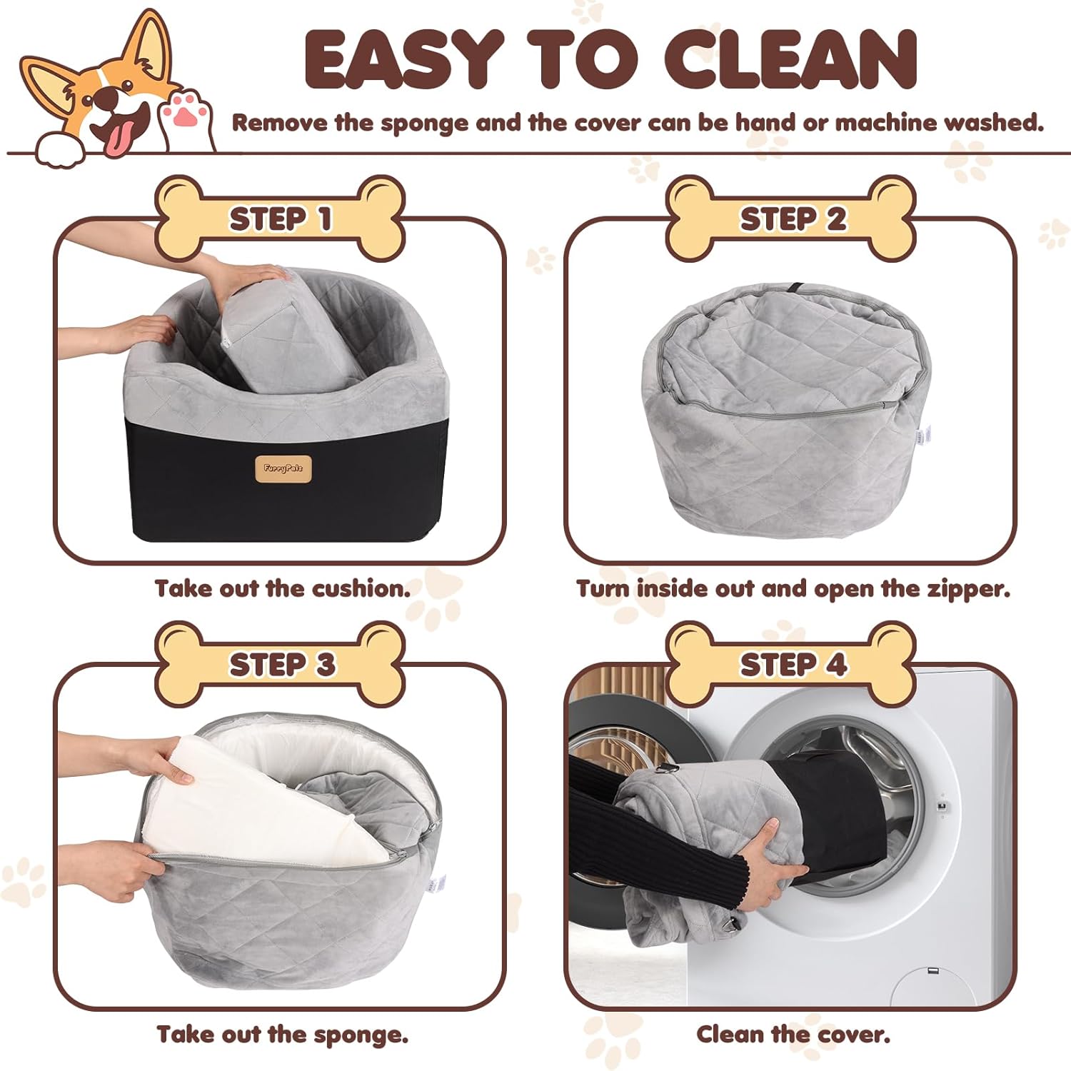 【Detachable and Fully Washable】: The dog booster seat is completely removable and washable. Simply open the inner zipper, remove the sponge, and clean the cover. If you have any questions or concerns, please feel free to contact us.