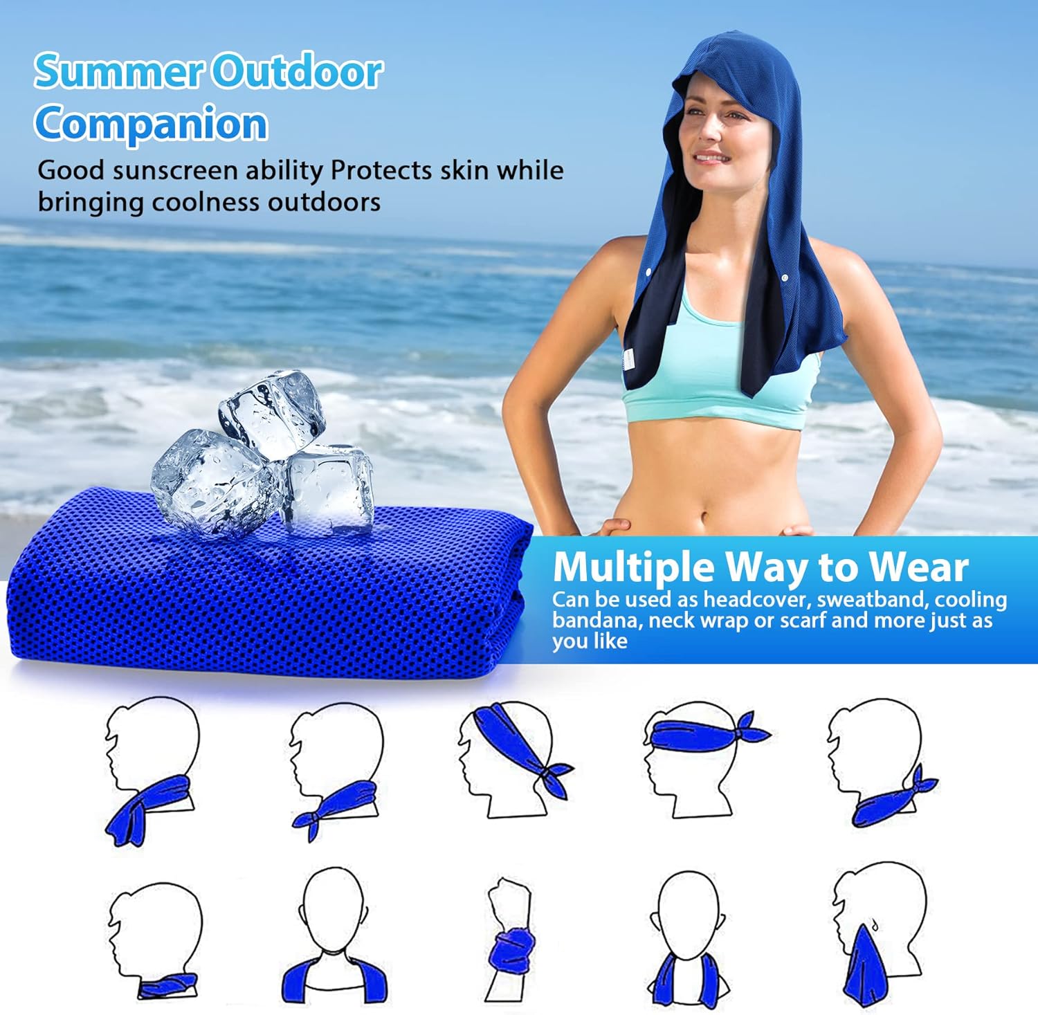 COOLING TOWELS FOR NECK AND FACE: Breathable, quick-drying hoodie towelstays chilled for up to 3 hours (depending on conditions). No chemicals are used for these Cooling Hoodie Towels. It’s perfect for hot flashes, outdoor activities, indoor exercise, fever or headache therapy, heatstroke prevention, sunscreen protection, cooling while absorbing.