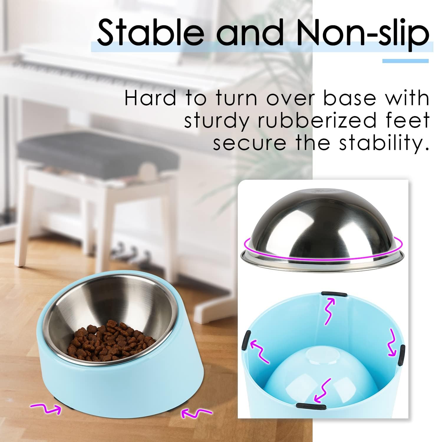 Stable and Non-slip Dog water bowl – This pet food bowls hard ard to turn over, heavy duty stand with non-slip feet